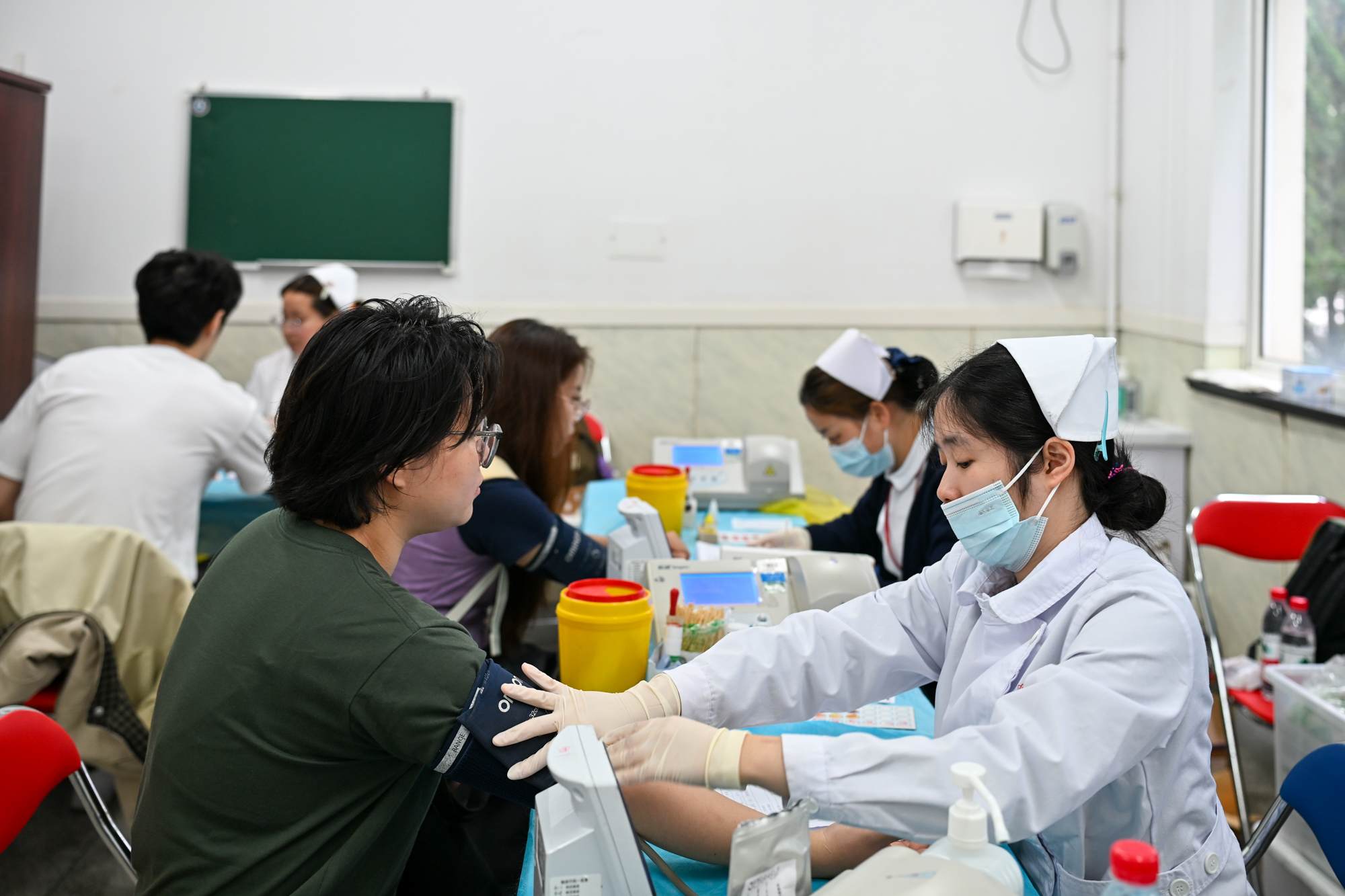 獻血活動期間,校醫院組建專項工作組,構建“健康篩查-規范采血-全程保障”服務體系,為無償獻血人員提供健康指導與暖心關懷。各院系相關負責人與輔導員駐守現場,陪伴獻血同學。