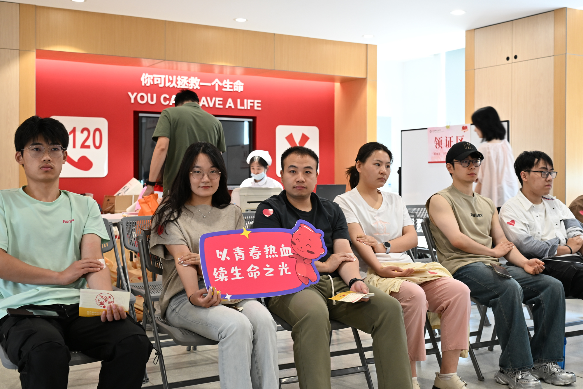 獻血當日,獻血點早早排起長隊,青年學子們挽起袖子,用熱血詮釋責任擔當。
