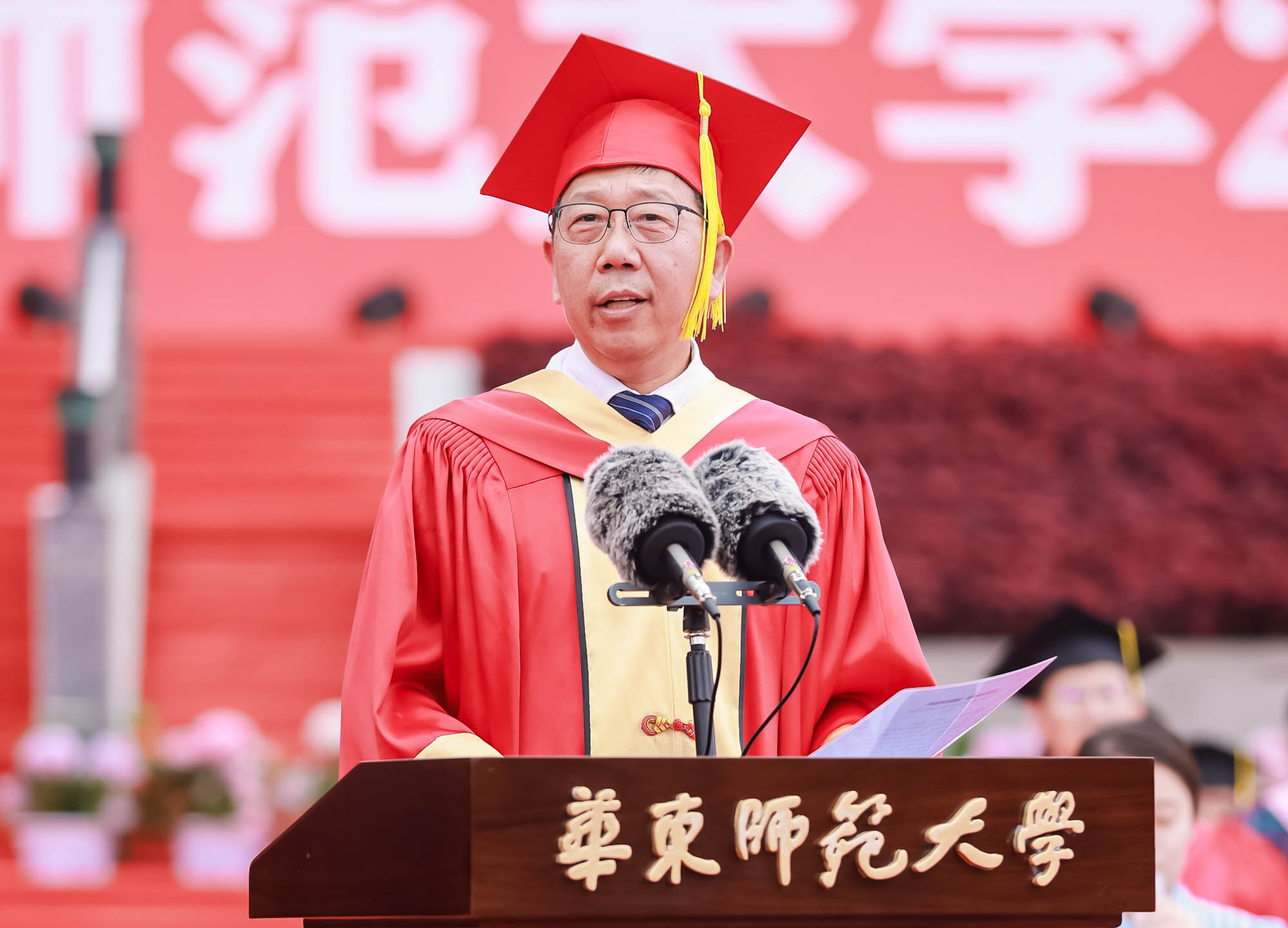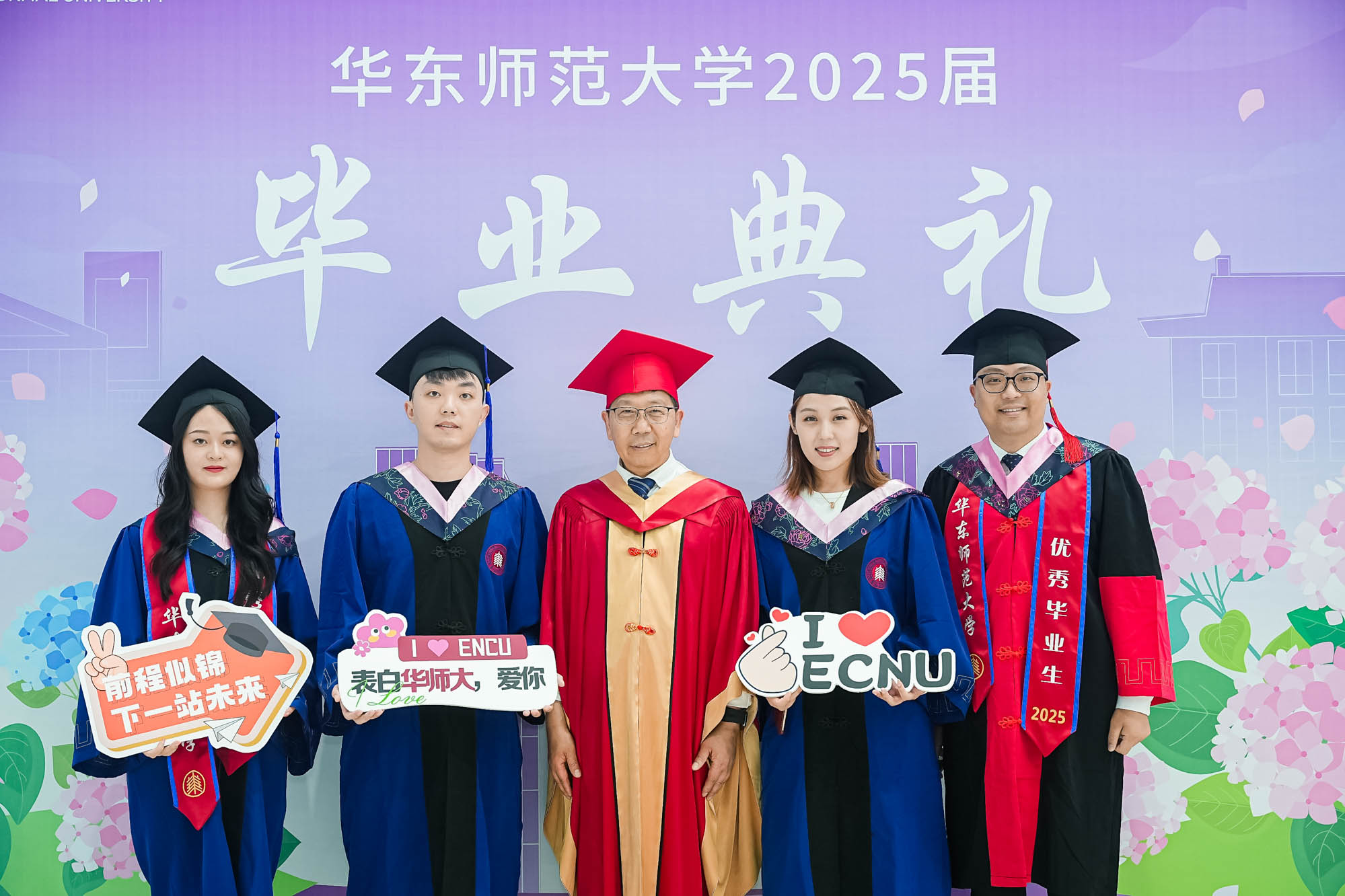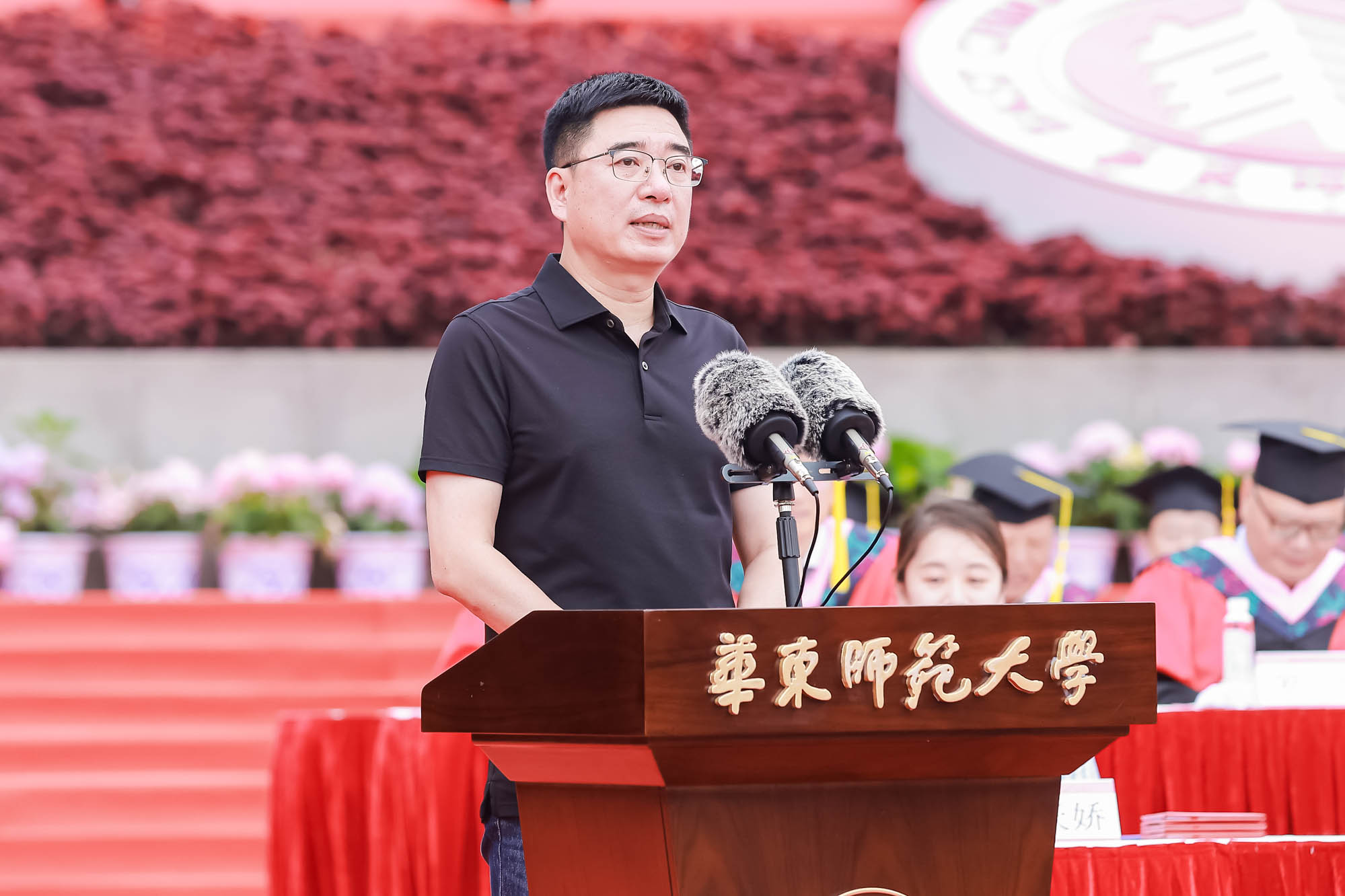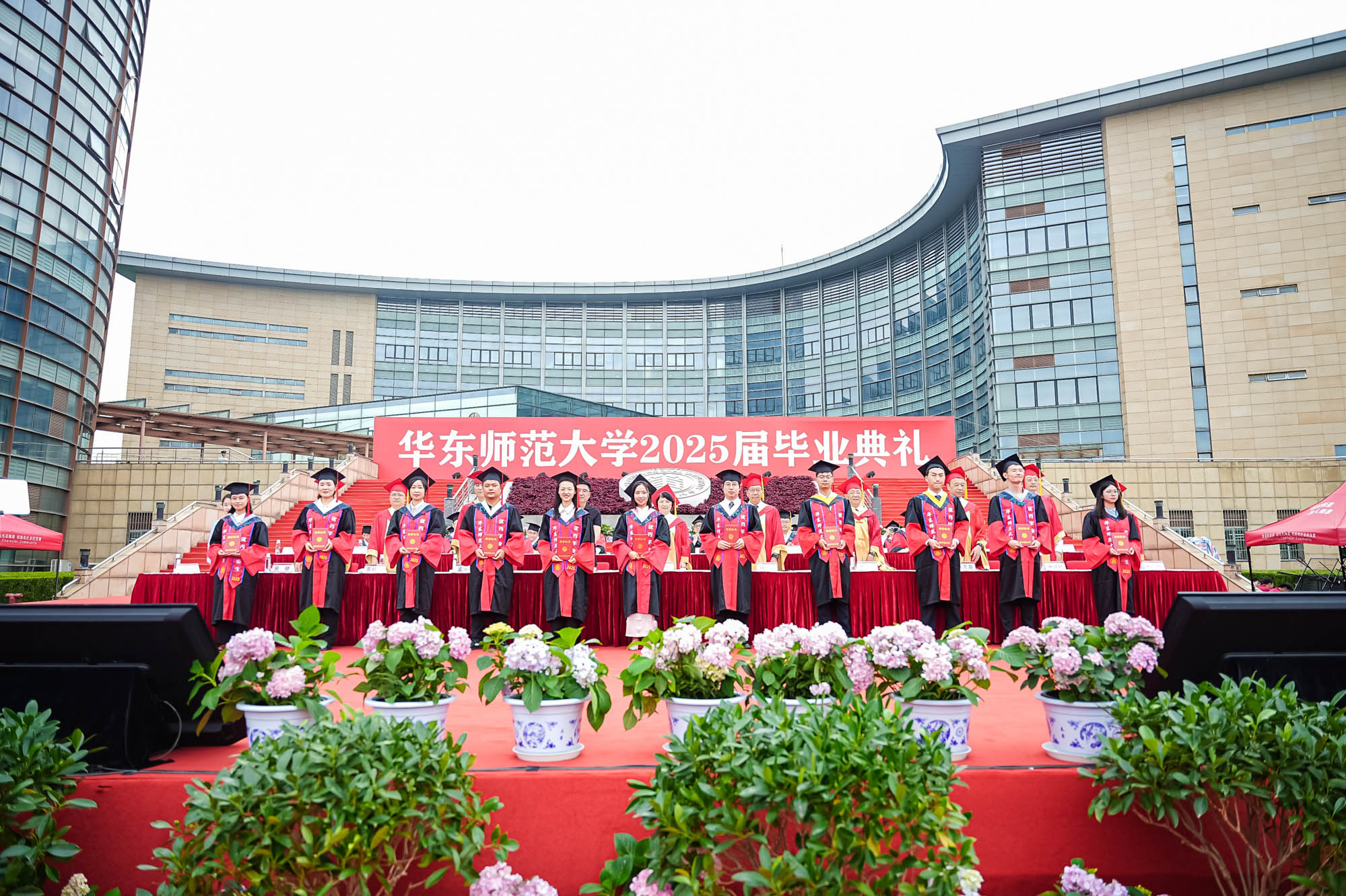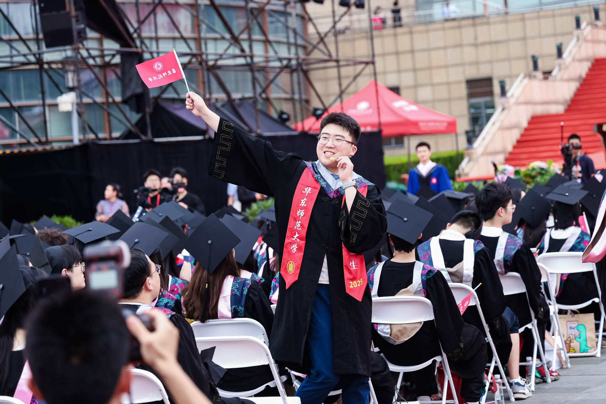 畢業典禮由華東師范大學統計學院教授於州和傳播學院2025屆本科生陳瑜瀟主持,并通過新華網教育頻道、央視頻、青年報和華東師大視頻號、微博、抖音、b站向全球進行直播。