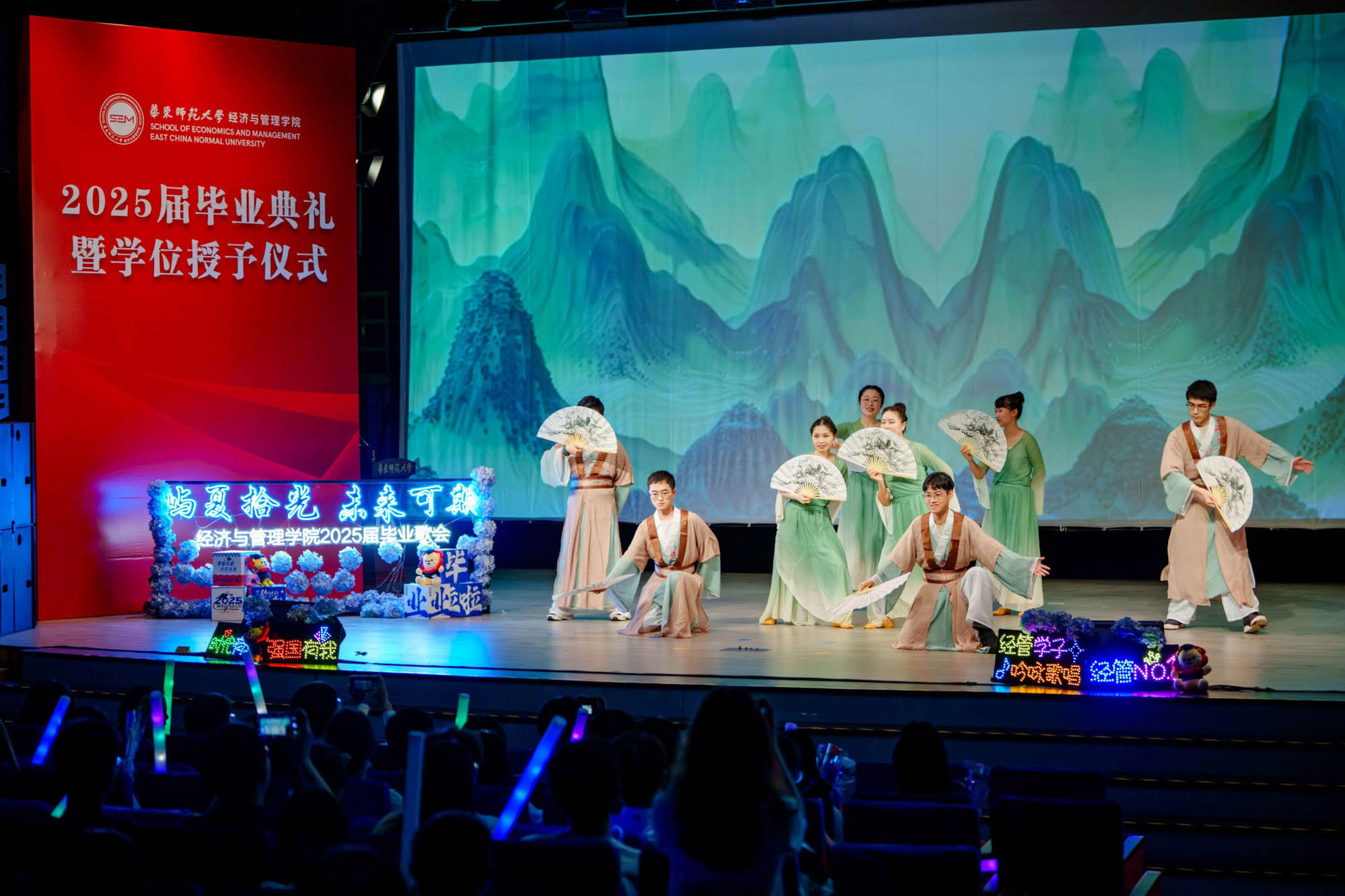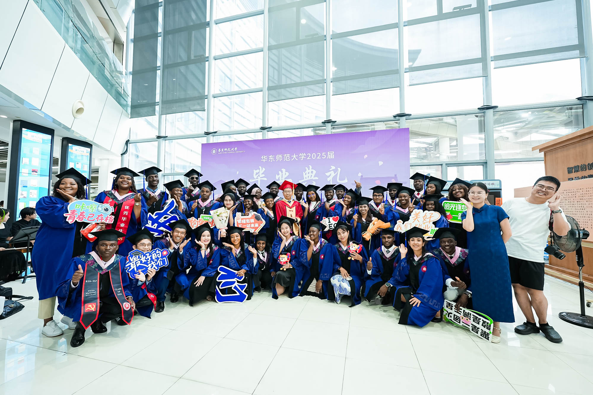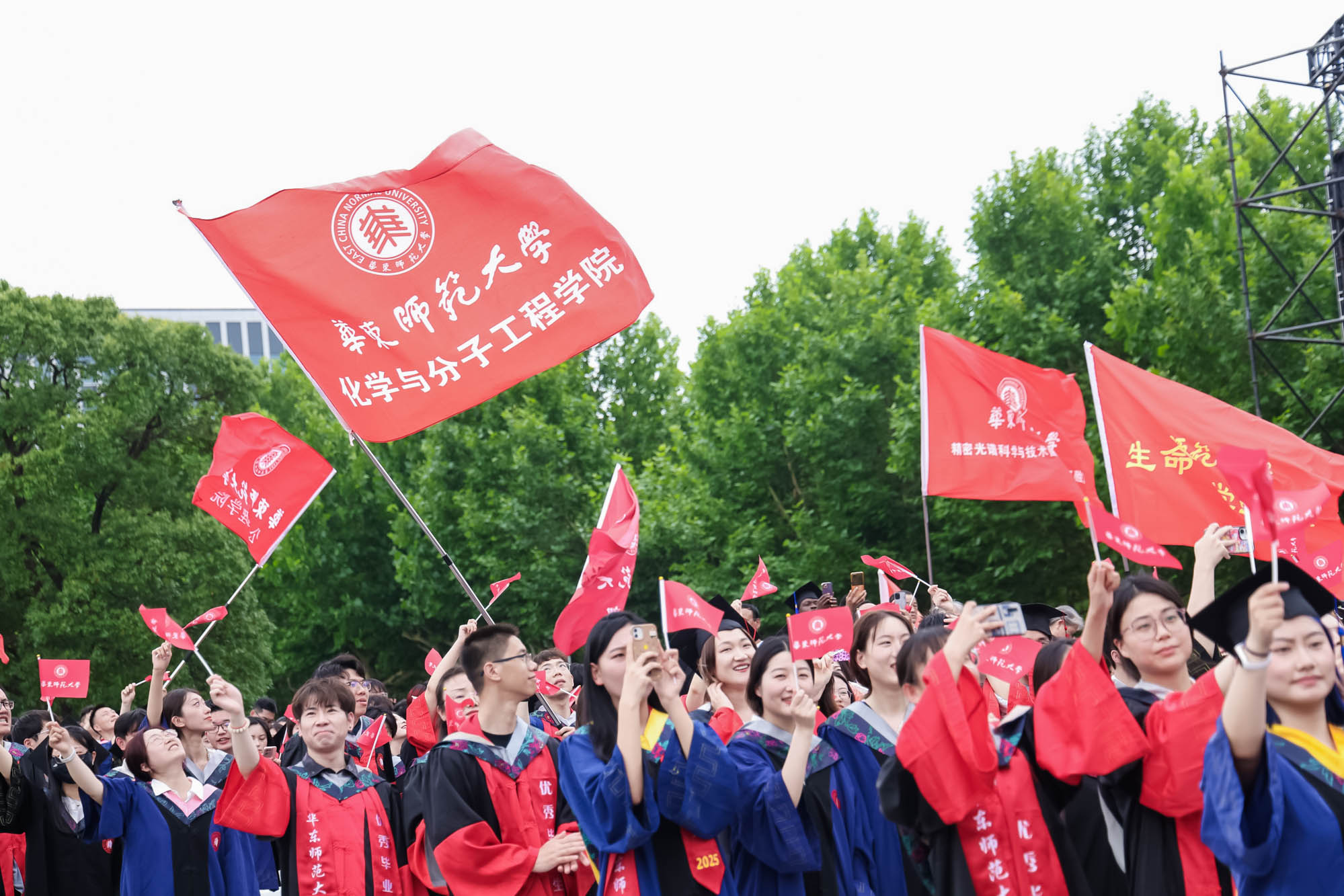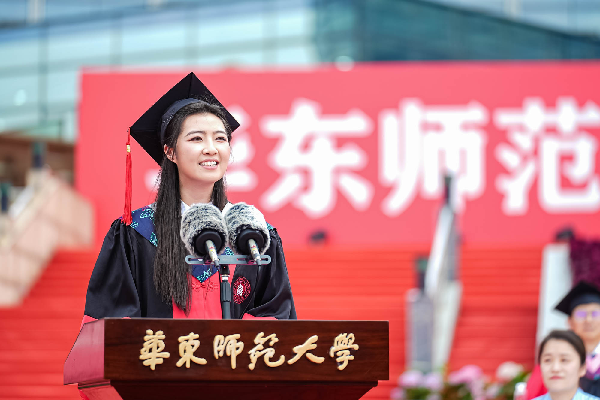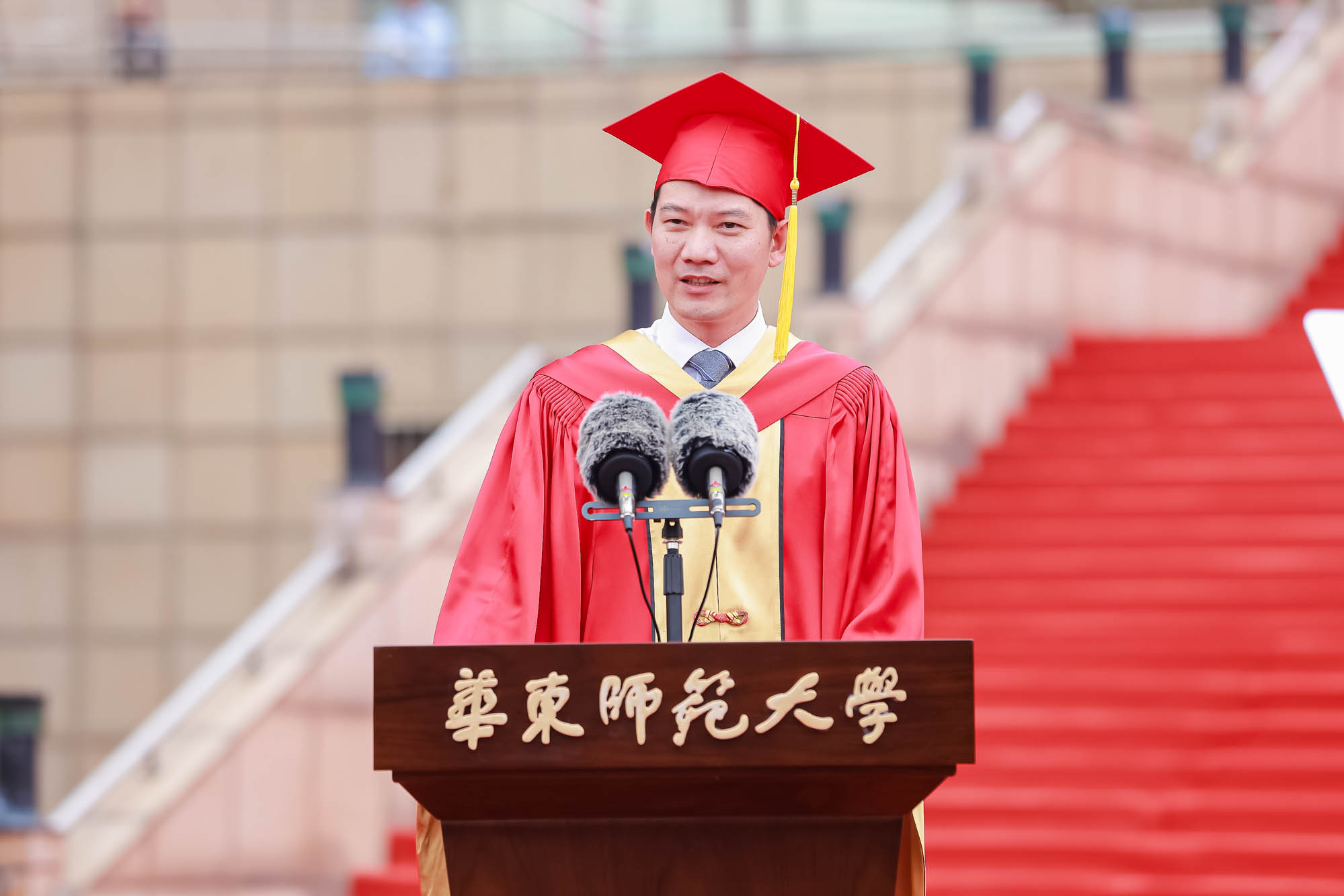 畢業典禮由華東師范大學統計學院教授於州和傳播學院2025屆本科生陳瑜瀟主持,并通過新華網教育頻道、央視頻、青年報和華東師大視頻號、微博、抖音、b站向全球進行直播。