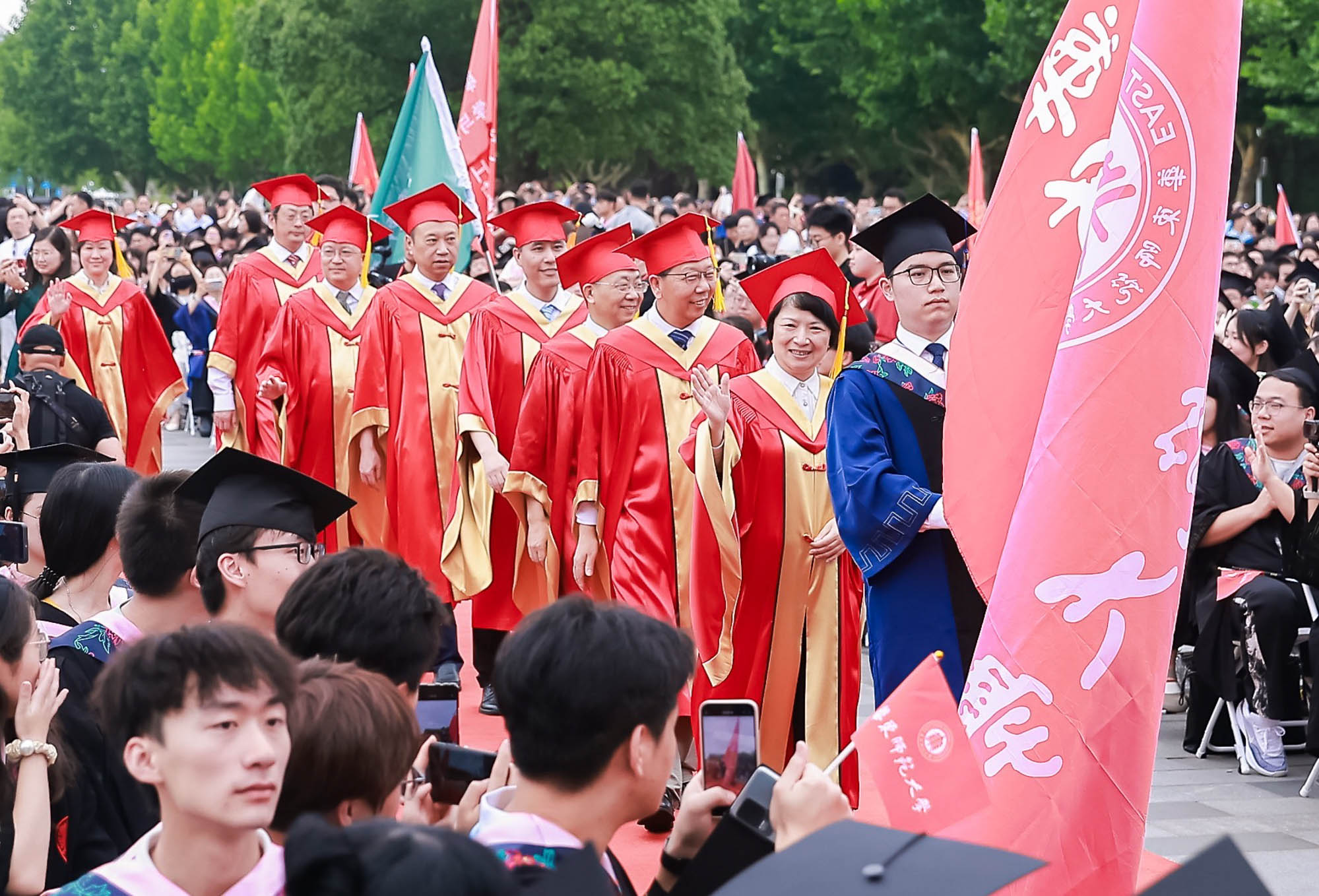 校領導梅兵、錢旭紅、曹友誼、孟鐘捷、戴立益、雷啟立、施國躍、程靜、吳健,校學術委員會和各專門委員會負責人,學部、院系、書院負責人,機關職能部門和直屬單位負責人,校友代表,教師代表,員工代表,畢業生親友等出席典禮,一起見證學子開啟人生新征程的重要時刻。