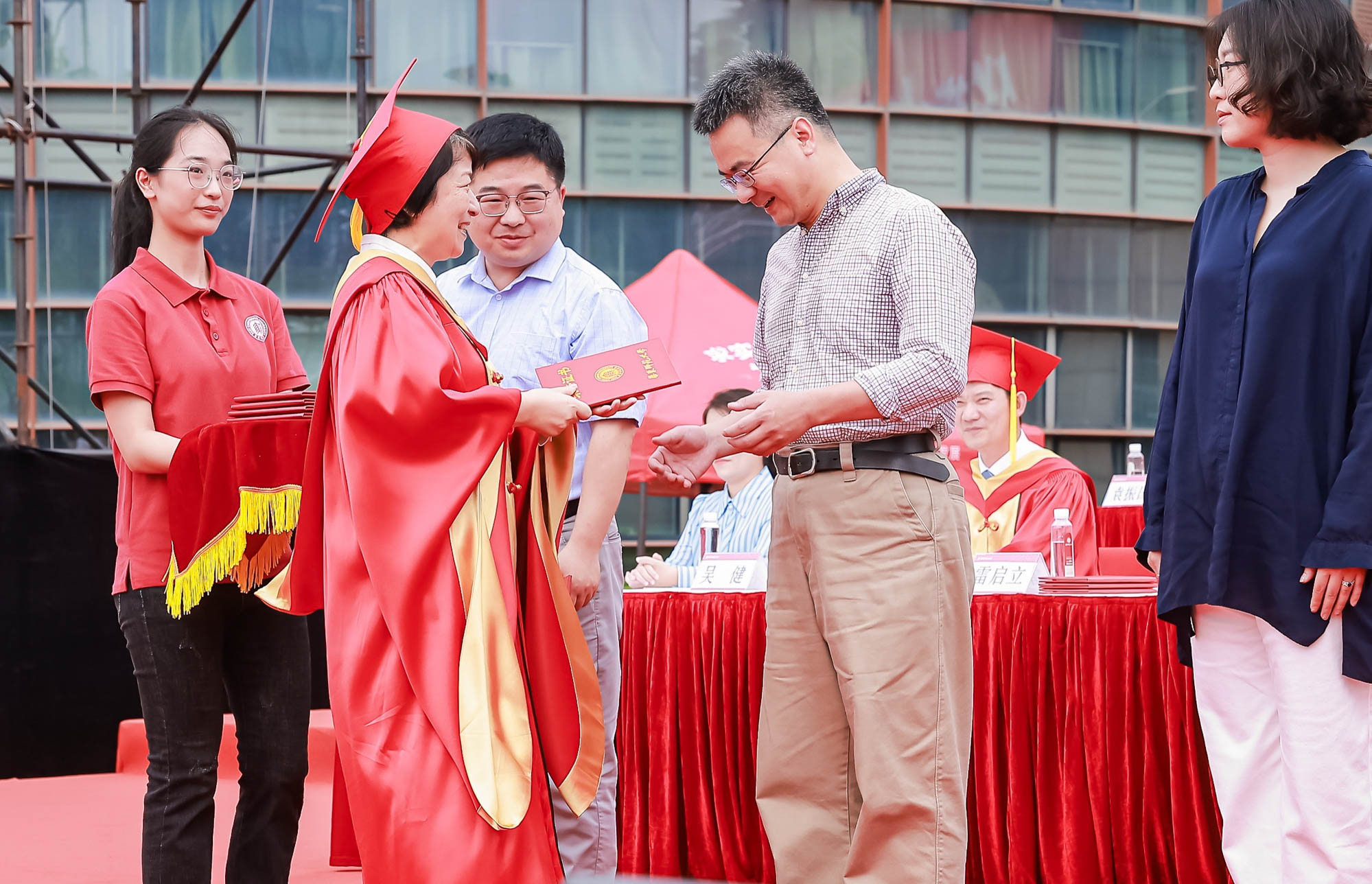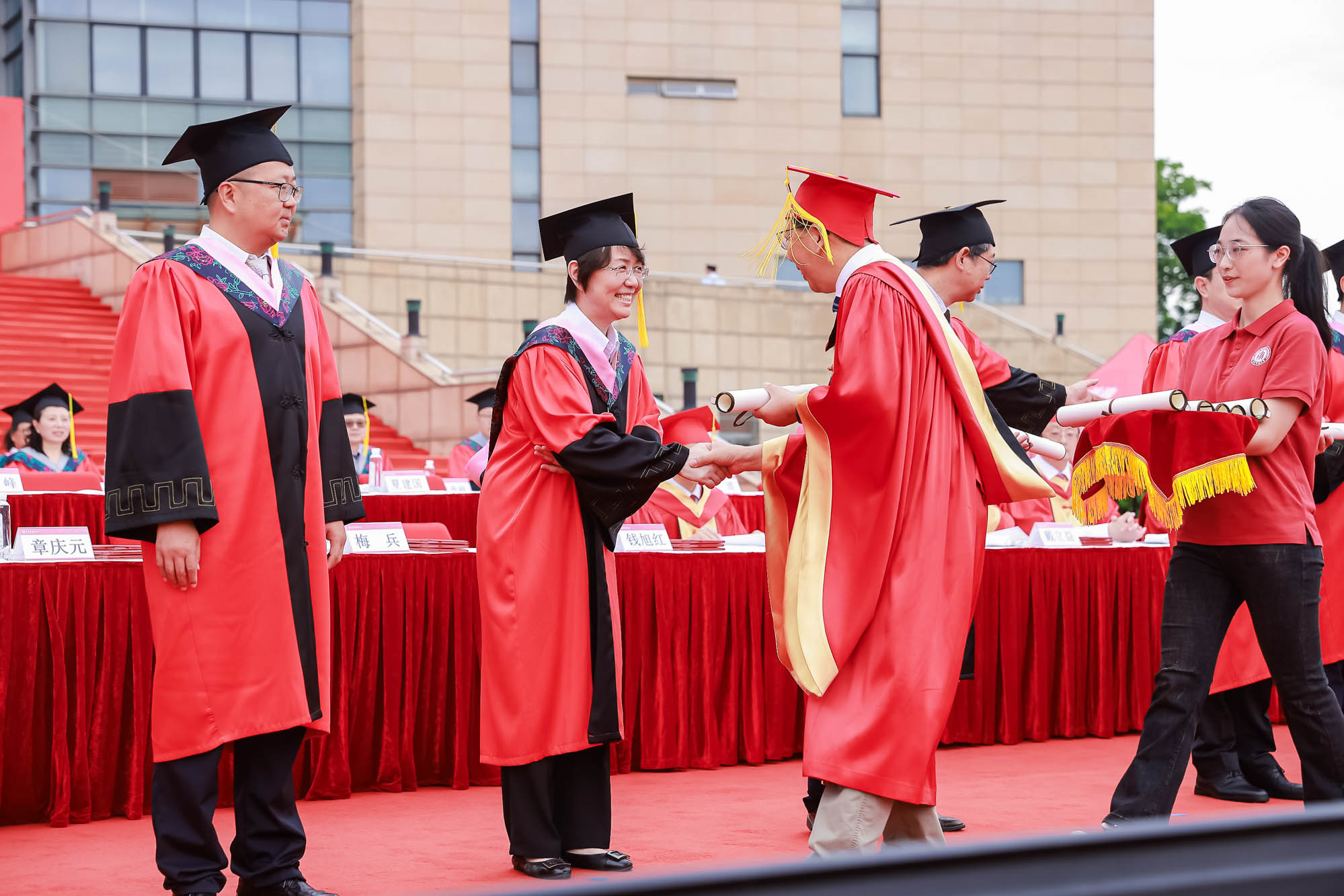校長、校學位評定委員會主席錢旭紅向學部、院系負責人頒發學歷學位授權書,希望通過他們將這份榮耀和祝福傳遞給每一位畢業生。