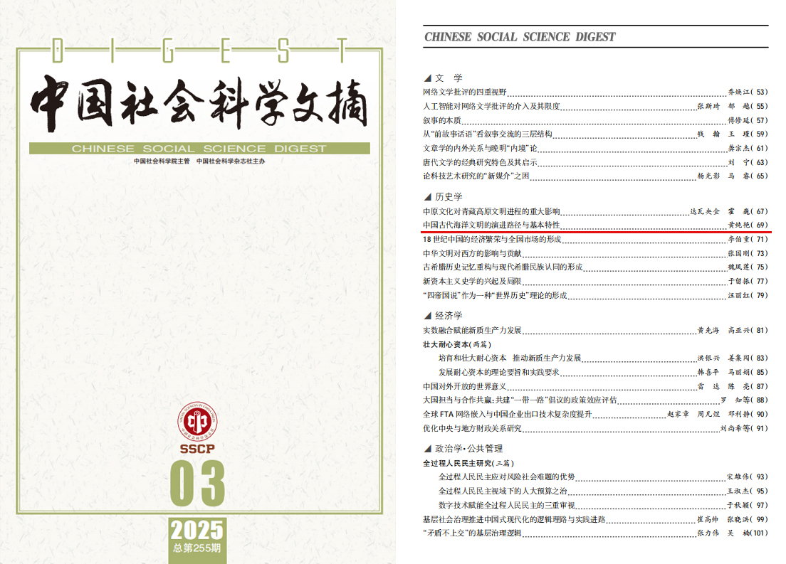|黃純艷教授文章被《中國社會科學文摘》全文轉載,探討中國古代海洋文明的演進路徑與基本特性