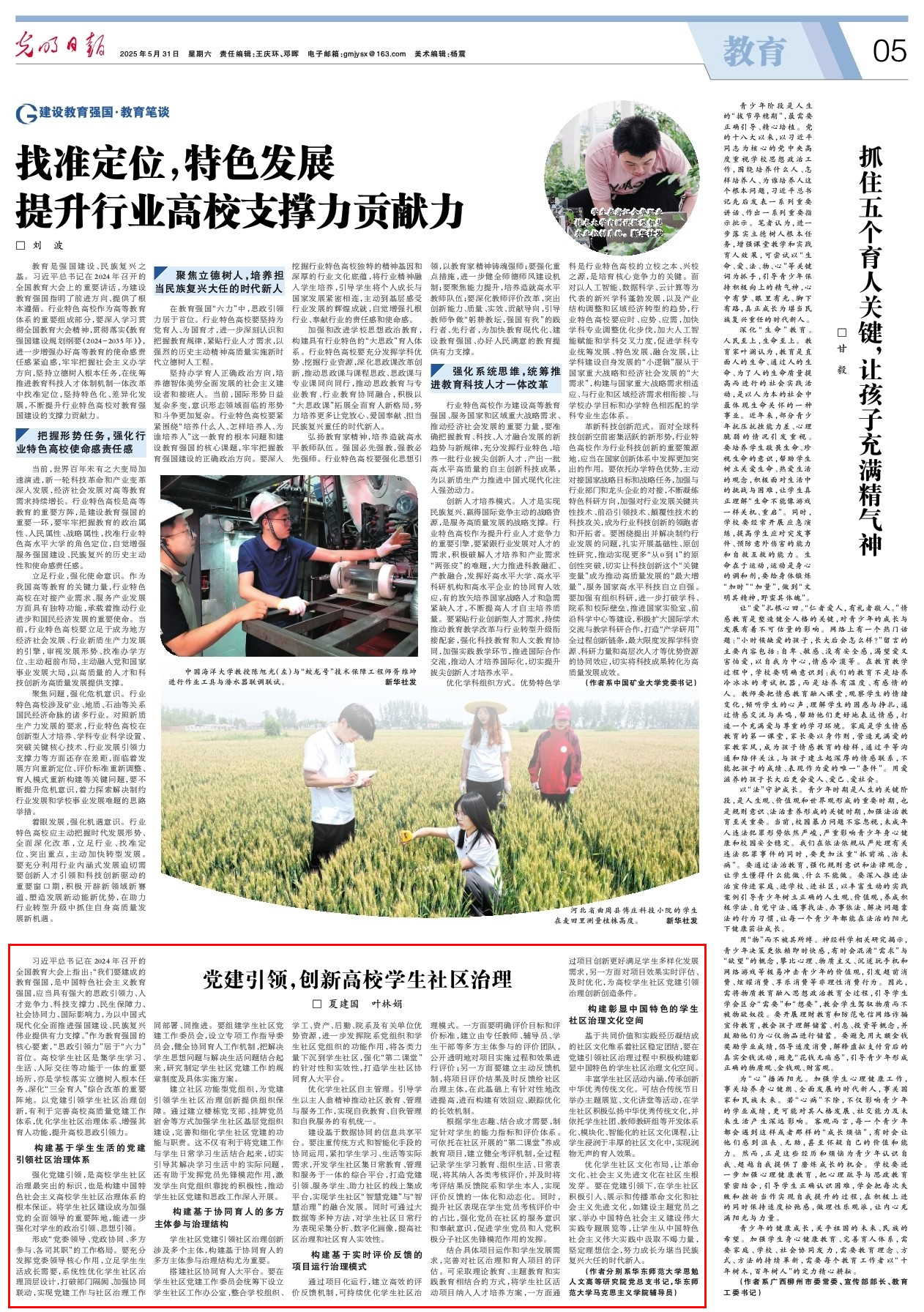 華東師范大學思勉人文高等研究院黨總支書記夏建國、華東師范大學馬克思主義學院輔導員葉林娟《黨建引領,創新高校學生社區治理》一文刊登在2025年5月31日《光明日報》。