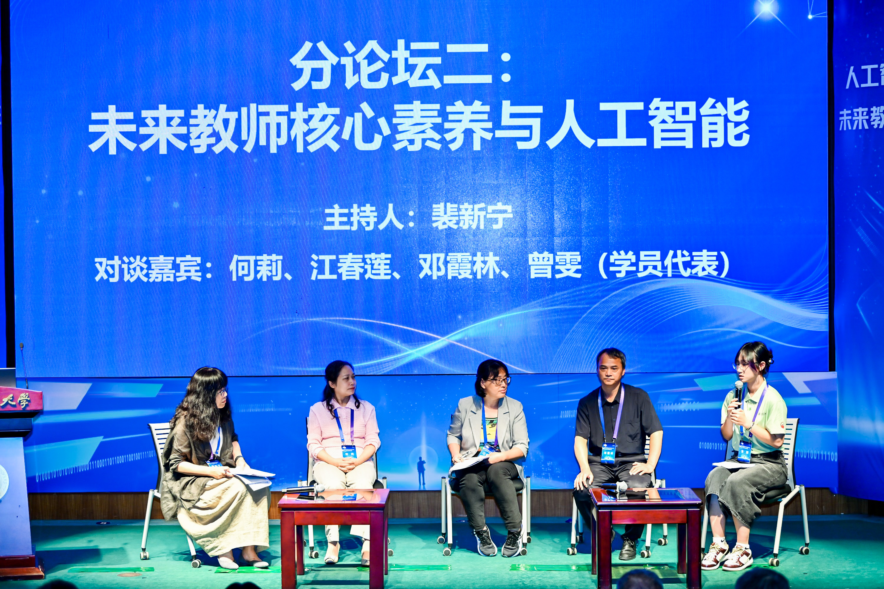 分論壇二以“未來教師核心素養與人工智能”為主題,聚焦科學教育中的AI應用與教師素養提升。“文科教育同樣需要科學思維滲透。”“注重培養學生人機共生的理性認知。”“AI工具的‘完美輸出’可能掩蓋學生的真實能力。”“避免‘有成果沒成長’的教育誤區。”“在AI時代守護教育的人文底色。”“在信息洪流中保持獨立判斷”。華東師范大學科學教育研究與教學中心執行主任裴新寧教授主持該環節,與上海市盧灣高級中學校長何莉、澳門大學教育學院數學教育專業副教授江春蓮、上海市甘泉外國語中學教師鄧霞林,以及來自華中師范大學的香港學員曾雯展開熱烈討論。