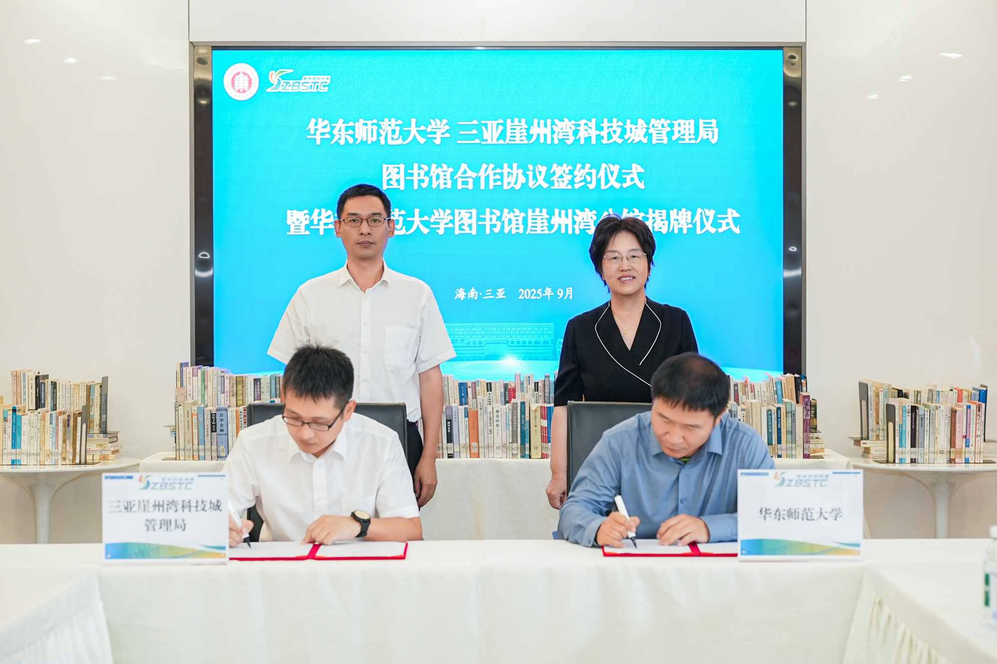 9月12日上午,華東師范大學與三亞崖州灣科技城管理局“創新研學谷圖書館合作協議簽約暨華東師范大學圖書館崖州灣分館揭牌儀式”在三亞崖州灣科技城高新區舉行。