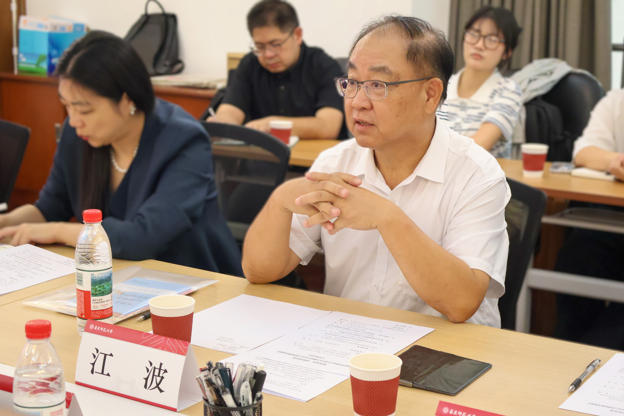 新青年計劃專家指導委員會專家、中國教育國際交流協(xié)會原秘書長、同濟大學原副校長江波,新青年計劃項目辦公室執(zhí)行主任孫金生,新青年計劃專家工作辦公室主任李天聰,新青年基地專項工作辦公室副主任王冠群,東西方國際教育研究院王浣塵;華東師大黨委常委、副校長吳健,黨委學生(研究生)工作部、選調(diào)生工作辦公室、國際合作與交流處、教育學部、國際漢語文化學院、外語學院、政治與國際關系學院、經(jīng)濟與管理學院和大夏書院等校內(nèi)單位師生代表參會。會議由黨委學生(研究生)工作部部長、選調(diào)生工作辦公室主任趙健主持。
