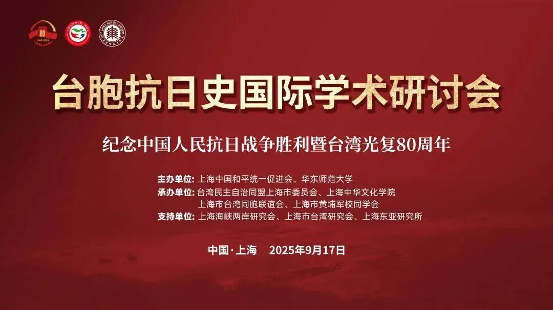 學習貫徹習近平總書記在紀念中國人民抗日戰爭暨世界反法西斯戰爭勝利80周年大會上的重要講話精神,深入研究全民族抗戰及臺胞抗日歷史,闡釋中國人民抗日戰爭勝利和臺灣光復的歷史意義,9月17日下午,“臺胞抗日史國際學術研討會——紀念中國人民抗日戰爭勝利暨臺灣光復80周年”在上海科學會堂舉行。