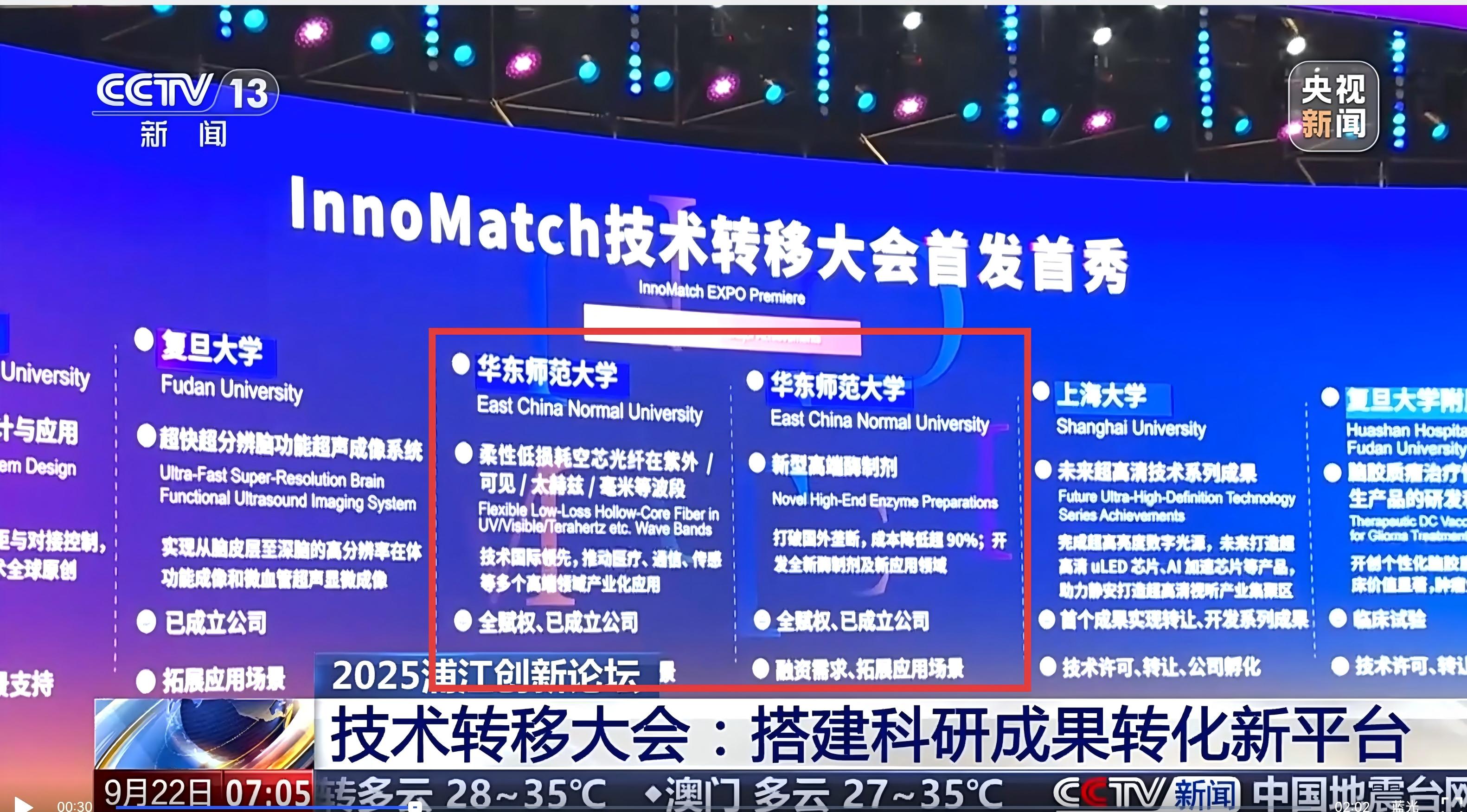 CCTV13報(bào)道2025技術(shù)轉(zhuǎn)移大會(huì),華東師大科技重磅亮相