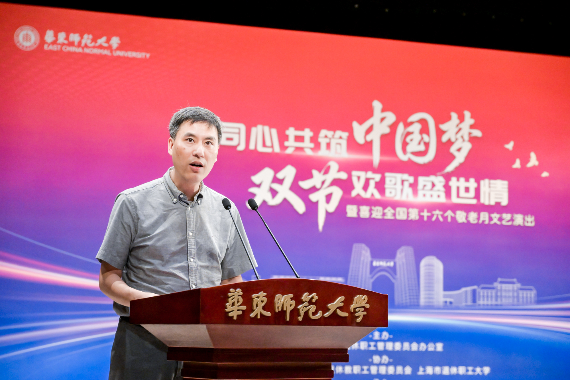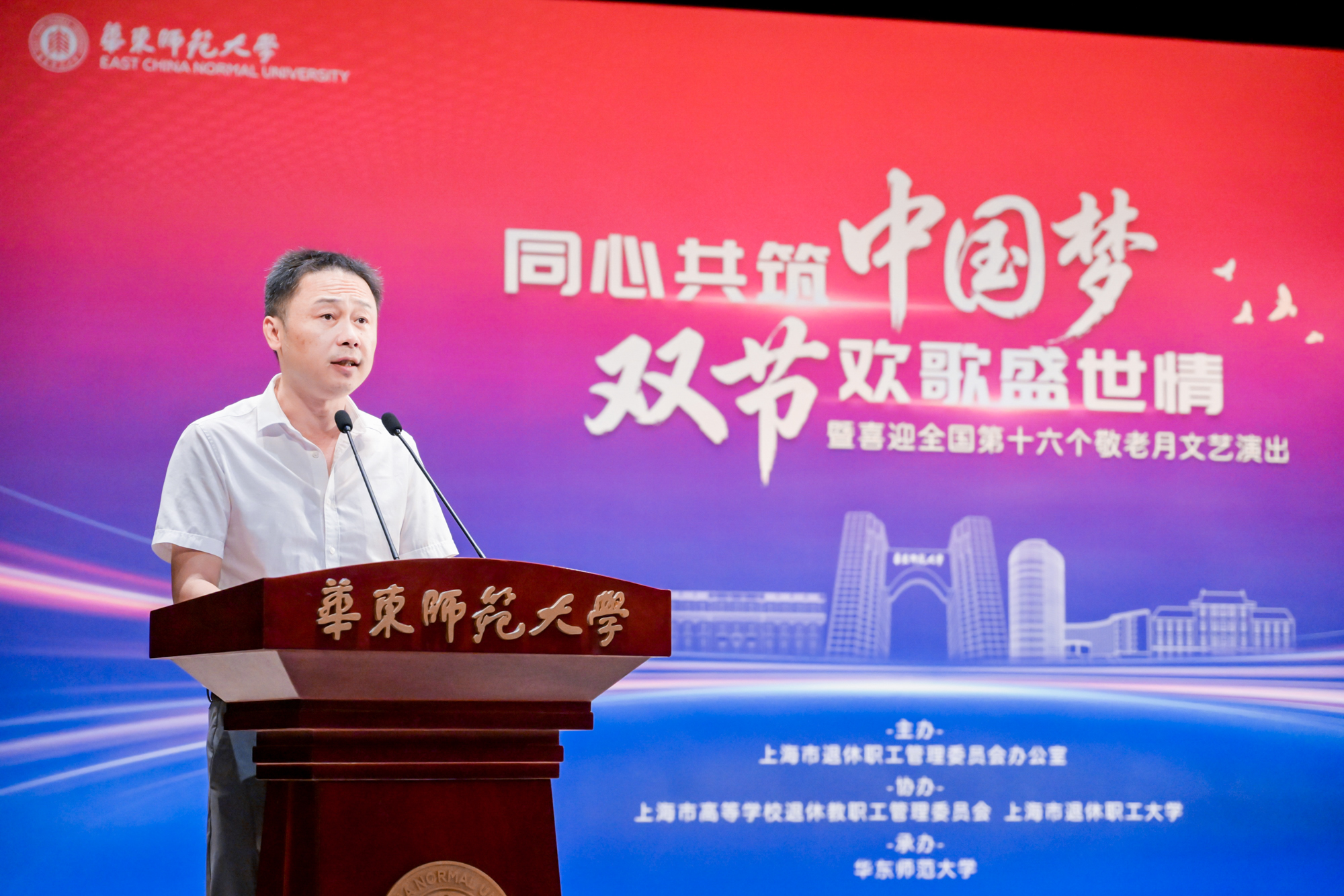 李偉在致辭中向全體來賓與老年朋友致以節日的問候,對華東師大為本次活動提供的支持表示感謝,并向精心籌備演出的全體演職人員致以敬意。他指出,在金秋時節舉辦此次文藝演出,既是共迎中秋、國慶雙節,更是為了弘揚中華民族孝親敬老的優良傳統,豐富老年人精神文化生活,共建老年友好社會。他表示,當前上海正持續深化老年友好型社會建設。未來,將始終堅持貫徹落實習近平總書記關于老齡工作的重要指示精神,攜手各方,繼續大力弘揚尊老敬老的社會風尚,切實做好退休職工的關心關愛工作,為構建和諧社會、實現中華民族偉大復興的中國夢貢獻力量。