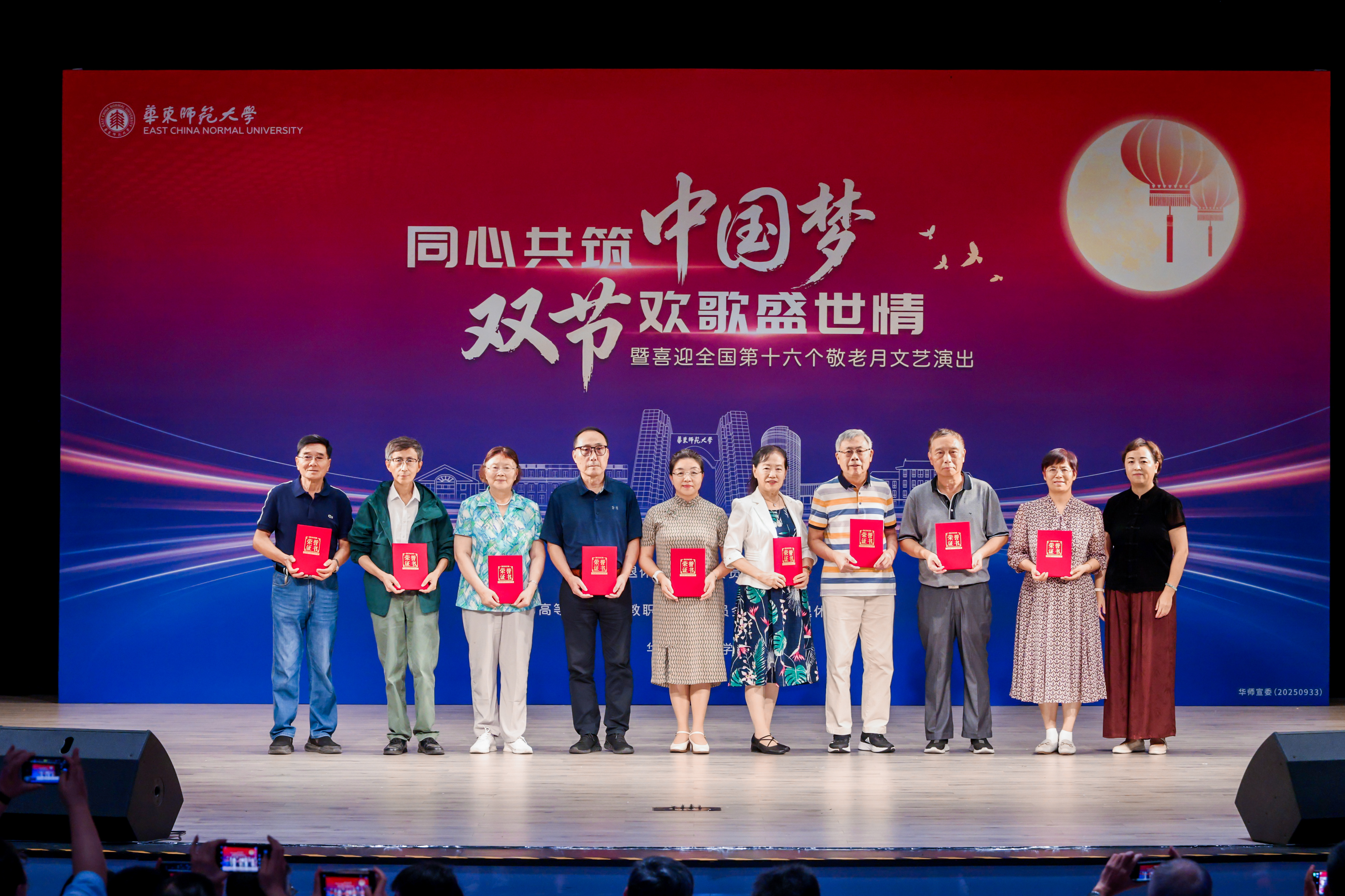 金秋九月,碩果盈枝;雙節將至,暖意融融。9月26日,華東師大普陀校區思群堂內掌聲陣陣、歡歌不斷,“同心共筑中國夢 雙節歡歌盛世情”暨喜迎全國第十六個敬老月文藝演出舉行。本次活動以文藝匯演為載體,融合頒獎儀式與節日祝福,匯聚離退休老同志、高校代表與社會各界嘉賓,共同弘揚敬老愛老傳統美德,禮贊新時代“銀發力量”,為即將到來的中秋、國慶和敬老月增添了濃厚的喜慶氛圍。