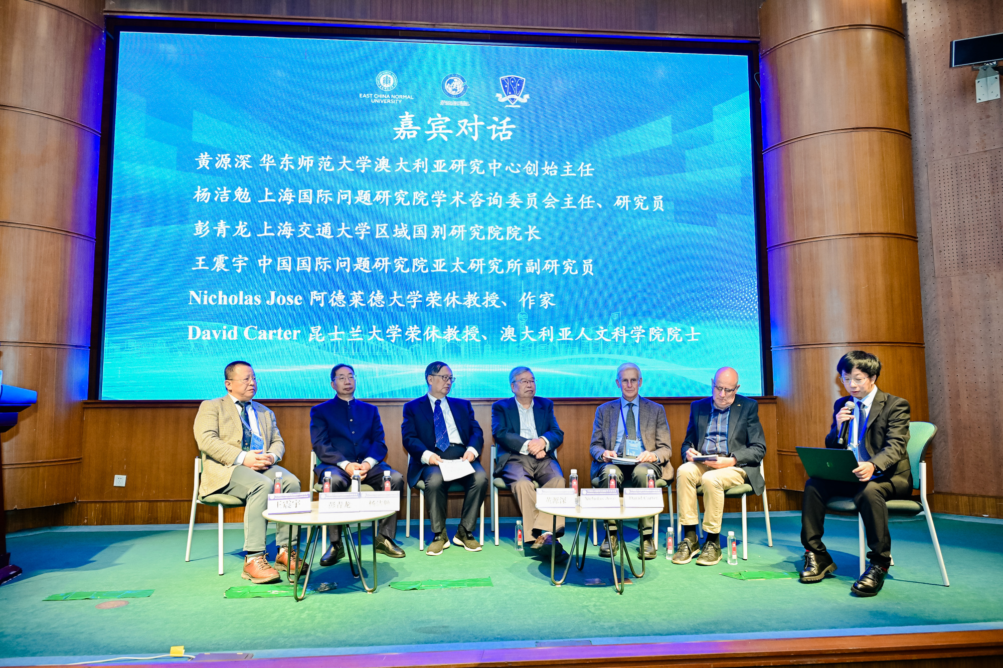 在嘉賓對(duì)話環(huán)節(jié),澳研中心創(chuàng)始主任黃源深教授、上海國(guó)際問(wèn)題研究院楊潔勉研究員、上海交通大學(xué)彭青龍?jiān)洪L(zhǎng)、中國(guó)國(guó)際問(wèn)題研究院王震宇副研究員,以及澳大利亞阿德萊德大學(xué)教授Nicholas Jose、昆士蘭大學(xué)教授David Carter等中外專家共同交流。這場(chǎng)對(duì)話,既有對(duì)澳研學(xué)科發(fā)展歷程的深度分析,也有對(duì)百年變局下澳研如何服務(wù)國(guó)家戰(zhàn)略、青年澳研人才培養(yǎng)路徑等議題的前沿探討。知識(shí)與思想的碰撞不僅為在場(chǎng)師生帶來(lái)啟發(fā),更凝聚了澳研需扎根現(xiàn)實(shí)、面向未來(lái)的深刻共識(shí)。