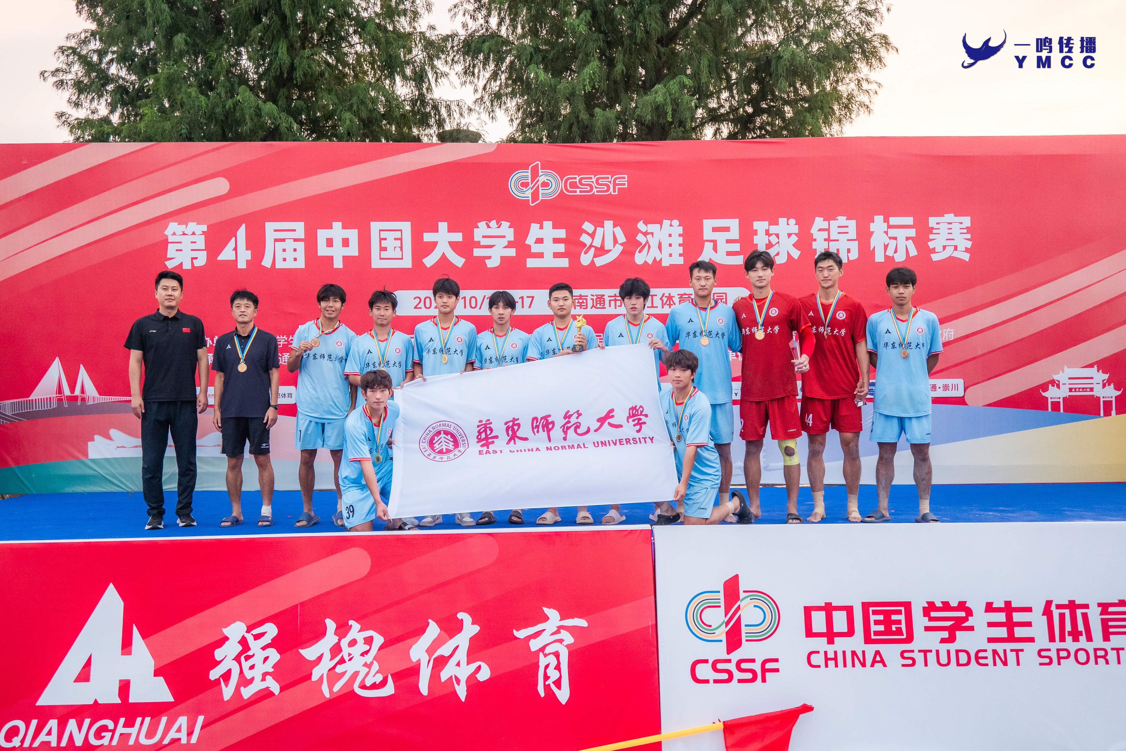 10月11日至17日,由中國學生體育聯(lián)合會主辦的第4屆中國大學生沙灘足球錦標賽在江蘇省南通市濱江體育公園舉行。華東師范大學男子足球隊在教練員劉宇的帶領下,奪得全國總冠軍,展現(xiàn)了卓越的團隊實力與頑強拼搏的體育精神。