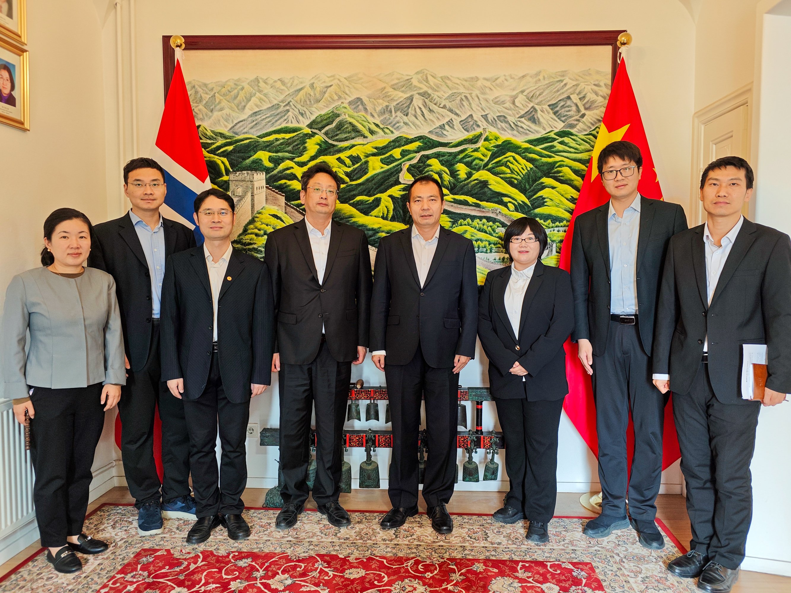 在挪威訪問期間,代表團還拜會了中國駐挪威大使館,向周寧宇公使銜參贊匯報了學校最新發展情況。