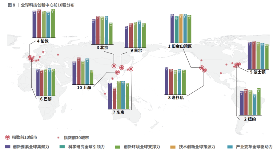 綜合評估顯示,2025年全球科技創(chuàng)新中心前30強依次為:舊金山灣區(qū)、紐約、北京、倫敦、波士頓、巴黎、東京、洛杉磯、首爾、上海、芝加哥、慕尼黑、西雅圖、華盛頓、深圳、新加坡、斯德哥爾摩、杭州、奧斯汀、休斯敦、費城、多倫多、阿姆斯特丹、圣迭戈、劍橋、大阪、巴塞爾、香港、柏林、蘇黎世。