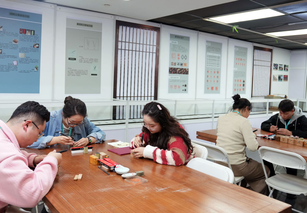 展覽期間,每日開設篆刻主題工作坊,由華東師范大學書法篆刻專業師生團隊現場指導,讓觀眾親自動手,體驗篆刻,實現“走得進、坐得下、動得起、帶得走”的沉浸式體驗,踐行了“有展必導、場館育人”的辦展理念。