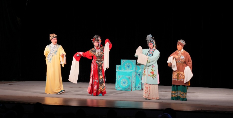 晚會(huì)在校民樂(lè)團(tuán)演奏的江南絲竹八大曲之一《三六》中拉開序幕,樂(lè)曲旋律華麗清新、流暢活潑,洋溢著歡快的節(jié)日氣氛。后勤保障部陳飛帆老師的魔術(shù)表演揭開了晚會(huì)的第一篇章“同心繪卷?藝聚芳華”。陳飛帆老師以嫻熟的手法、緊湊的節(jié)奏,順利完成了絲巾融合、圍脖變色、玫瑰三分、魔幻漂浮桌等節(jié)目的神奇展示和絲滑轉(zhuǎn)換,使現(xiàn)場(chǎng)觀眾感受到了魔術(shù)的魅力與神秘,贏得滿堂喝彩。由校園十大歌手王越月、鄧雅文同學(xué)演唱的歌曲《天后》,以清澈的聲線、深沉的質(zhì)感,把歌曲中那份青春的彷徨與堅(jiān)持,輕輕唱進(jìn)了觀眾的心里。相聲《夜行記》張口就是包袱、笑料不斷,既有傳統(tǒng)相聲的幽默底蘊(yùn),又增添了校園生活的清新氣息。崗拉梅朵藏文化社的同學(xué)們踏著靈動(dòng)的舞步跳起歡樂(lè)的擦普舞,盡情展現(xiàn)了藏文化的厚重底蘊(yùn)與鮮活生命力。