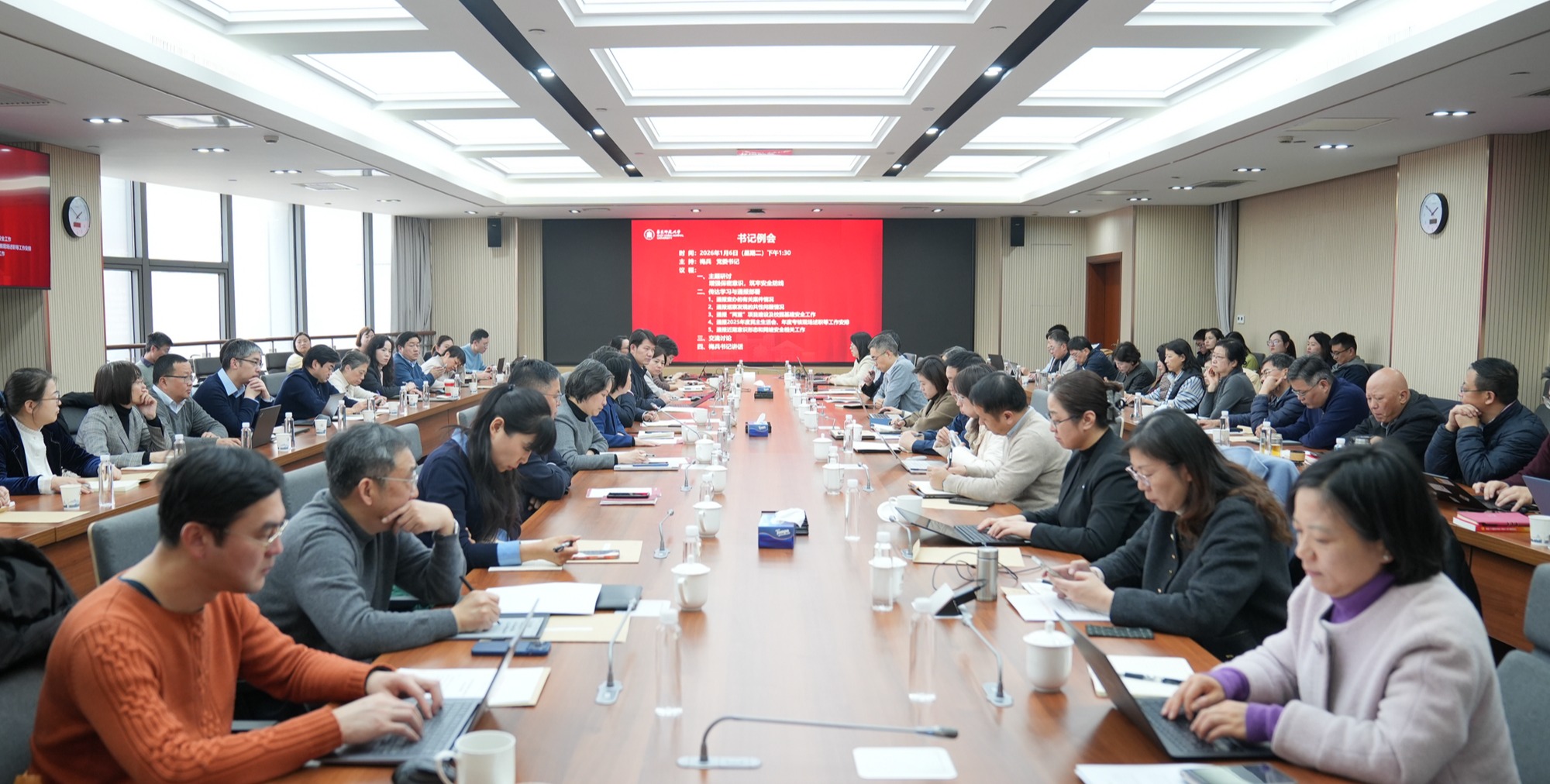 12月29日下午,華東師范大學(xué)舉行黨委理論學(xué)習(xí)中心組(擴(kuò)大)學(xué)習(xí)會,專題學(xué)習(xí)貫徹黨的二十屆四中全會精神,重點圍繞加強(qiáng)網(wǎng)絡(luò)、數(shù)據(jù)、人工智能等新興領(lǐng)域國家安全能力建設(shè)展開交流探討。校黨委書記梅兵主持會議并講話。校黨委理論學(xué)習(xí)中心組成員,相關(guān)職能部門及院系負(fù)責(zé)人參加會議。