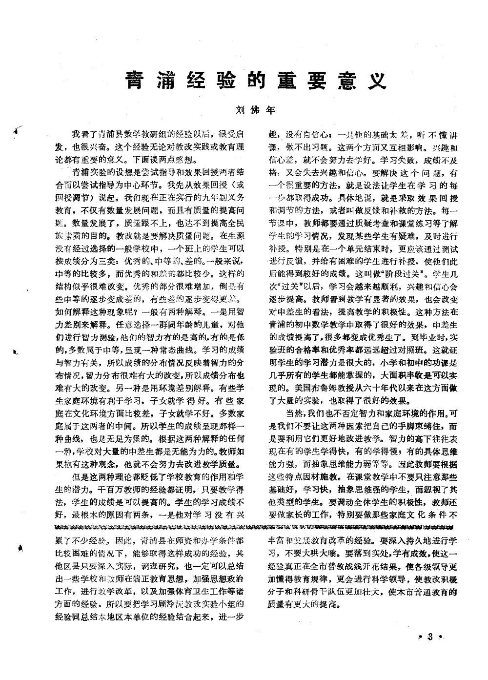 上海教育(中學版)刊登劉佛年關于《青浦經驗的重要意義》的論述