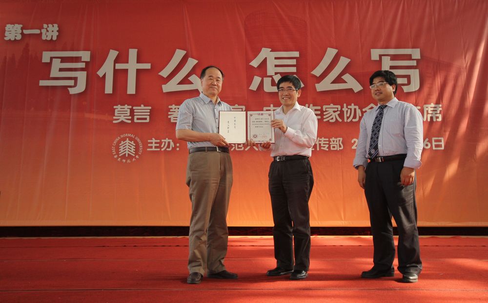 校黨委書記童世駿向莫言頒發兼職教授聘書