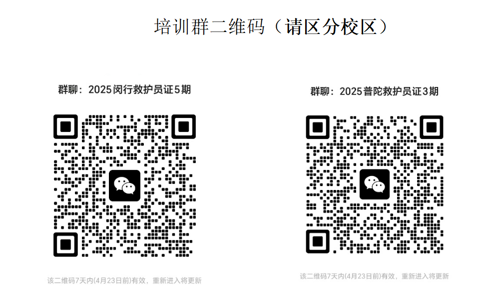 2、報名辦法:掃通知下方二維碼進群(請注意區分兩校區二維碼),在老師指導下通過“救在身邊 守滬生命”小程序報名,報滿為止。
