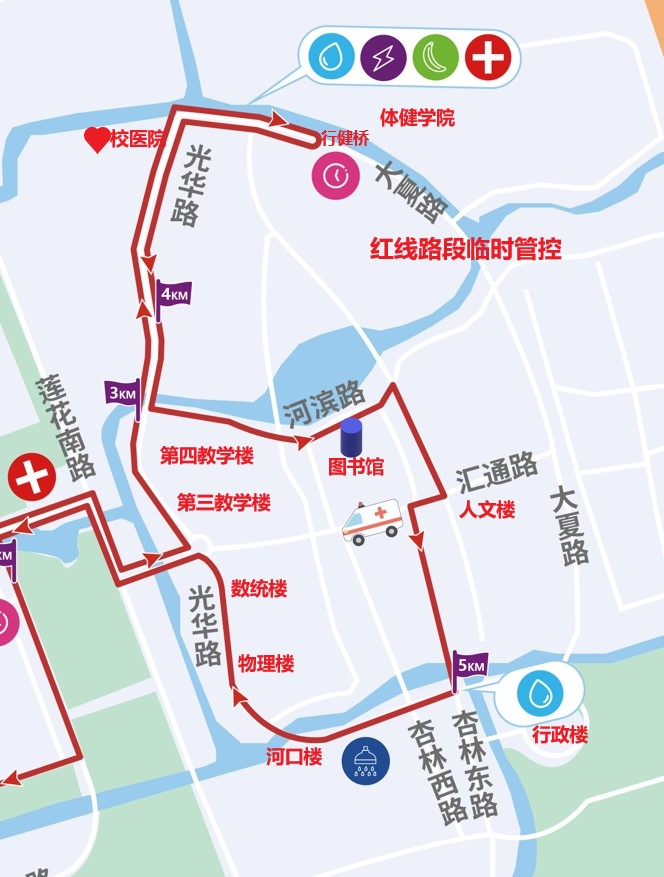 因?閔行區委、區政府主辦的“大零號灣·無限π跑”活動將在閔行校區舉行,?現定于2025年5月25日(周日)8:00-11:00?,對閔行校區蓮花南路校門及校園部分道路實施臨時交通管控,臨時管控區域詳見示意圖。
