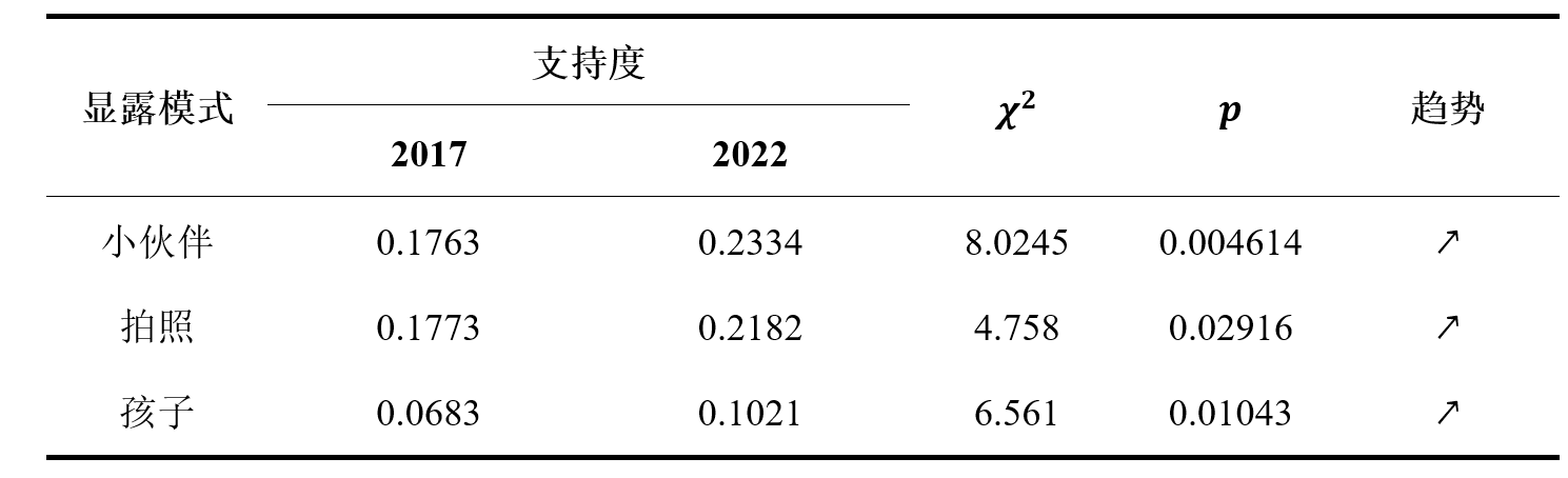 進(jìn)一步對數(shù)據(jù)集進(jìn)行顯露模式挖掘,發(fā)現(xiàn)2017-2019年段的顯露模式集中在社交方面,說明在疫情之前,針對旅游出行的社交需求(情感需求),人們除了欣賞美景,越來越重視陪伴家人和朋友一起出門游玩的過程,同時(shí),記錄旅途中美好時(shí)光相互分享也可以滿足自身的社交需求。