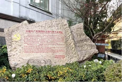 位于今上海東寶興路與地鐵三號(hào)線交匯處街邊花壇內(nèi)的中共四大遺址紀(jì)念碑