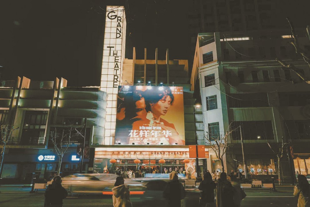 今年二月份,由王家衛導演的經典影片《花樣年華》重登銀幕。上海人民廣場街頭,年輕人在夜色里與大光明影院巨幅特別版海報合影,光影斑駁,年華交錯,展現的是經典IP的強大生命力。(圖源:“上海黃浦”公眾號)