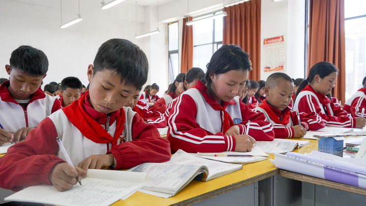 四川省涼山州昭覺縣城北鎮沐恩邸中心小學學生近日在課堂上寫作業。 新華社發