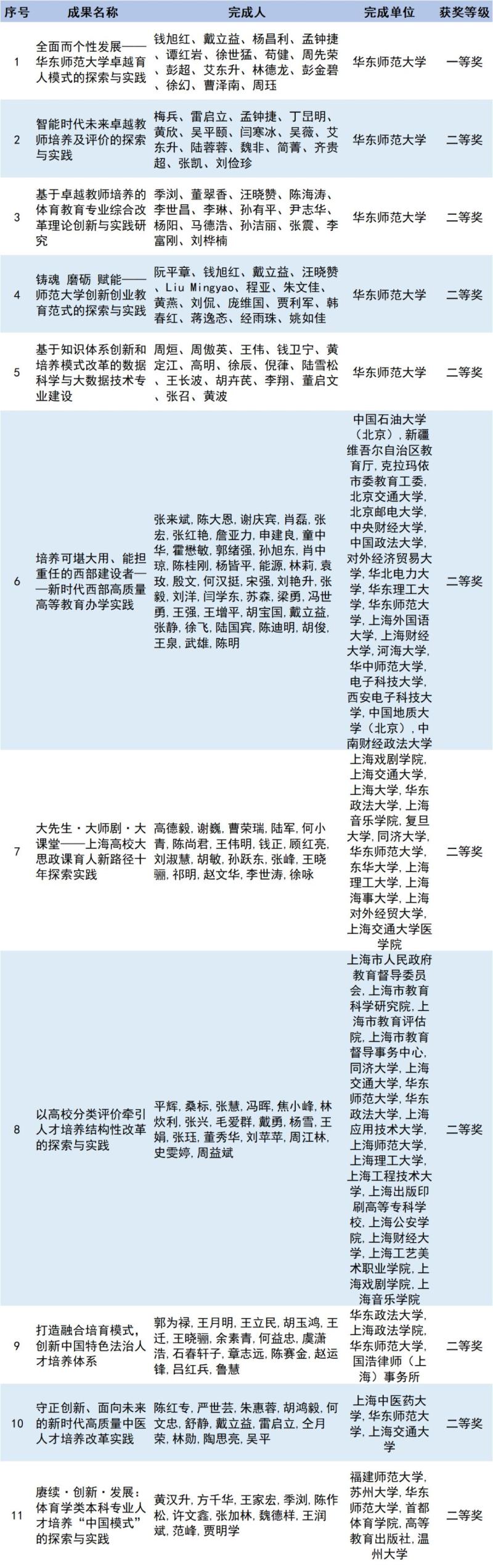 以上為上海交通大學(xué)國家級教學(xué)成果獎一等獎獲獎名單