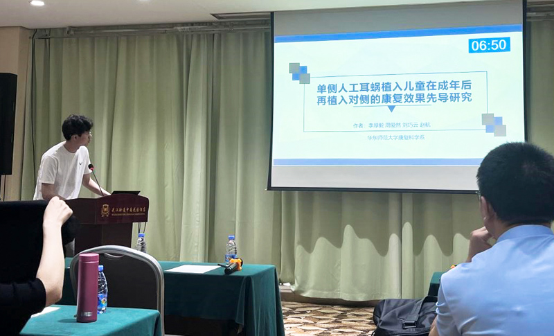 今年暑假,華東師范大學(xué)康復(fù)科學(xué)系三年級(jí)本科生李厚毅帶著團(tuán)隊(duì)的最新研究成果,赴武漢參加全國聽力學(xué)及嗓音言語醫(yī)學(xué)學(xué)術(shù)會(huì)議。與眾不同的是,李厚毅同學(xué)是一位雙耳人工耳蝸植入者。他以自身為研究對(duì)象,設(shè)計(jì)了系統(tǒng)的觀測(cè)指標(biāo)和實(shí)驗(yàn)流程,探究“單側(cè)人工耳蝸植入者在成年后再植入對(duì)側(cè)”的康復(fù)訓(xùn)練過程和效果。這個(gè)融入了親身體驗(yàn)的研究,讓以往臨床中遇到的諸多疑問有了新的答案。