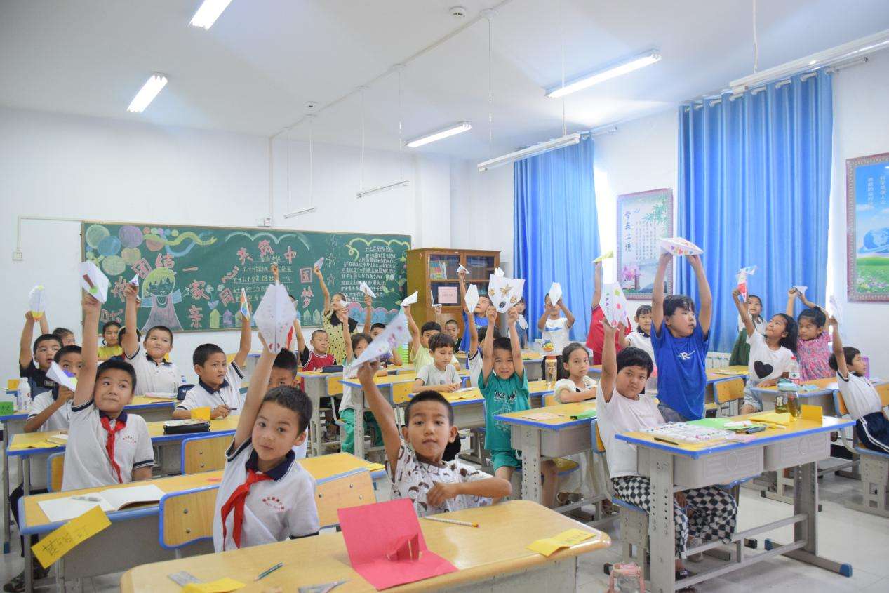小營員們將對祖國的熱愛和夢想畫在飛機上放飛