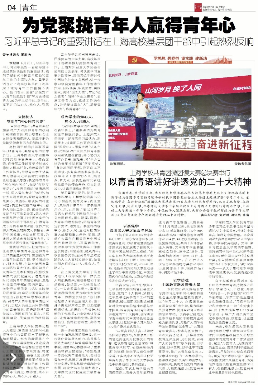 青年報丨上海學校共青團微團課大賽總決賽舉行 以青言青語講好講透黨的二十大精神