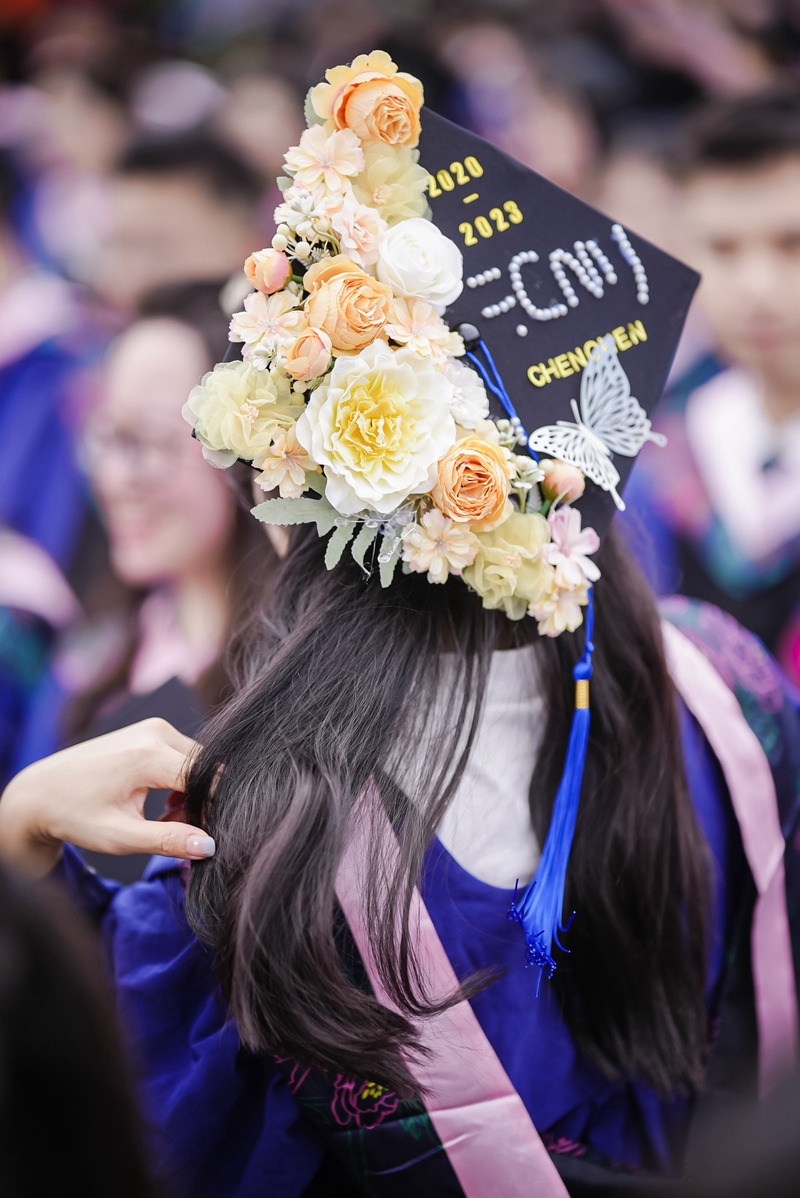 畢業(yè)典禮上,隨著《一路生花——卓越·啟航,獻(xiàn)給華東師大2023屆畢業(yè)生》視頻放送,從4407名研究生到3650名本科生,8000多名應(yīng)屆畢業(yè)生笑開了花,其中超過四成的同學(xué)投身了教育事業(yè)。事實(shí)上,從2014年起,華東師大為每一屆畢業(yè)生種植一片六月盛開、寓意美好的“畢業(yè)花”。今年,經(jīng)過學(xué)生票選,2014年的畢業(yè)花——向日葵再度當(dāng)選。