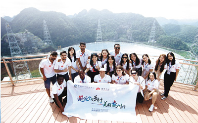 2023年6月4日,來華留學生在“邂逅中國鄉村·美麗貴州行”社會實踐活動中參觀中國天眼科普基地。教育部留學服務中心供圖