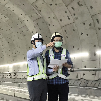 2022年9月10日,黃朝欽(左)在中國電建工程項目現場。受訪者供圖