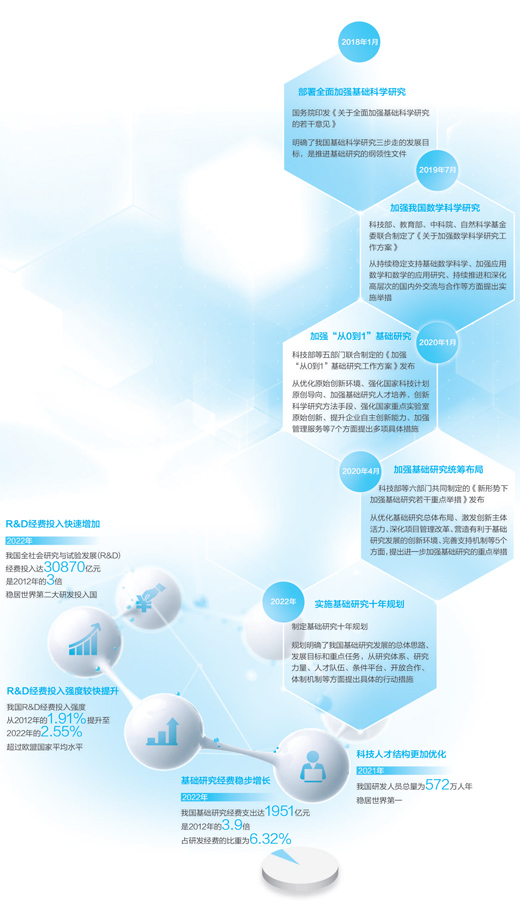 全國(guó)基礎(chǔ)研究經(jīng)費(fèi)5年增長(zhǎng)1倍;加快建設(shè)國(guó)家實(shí)驗(yàn)室、全國(guó)重點(diǎn)實(shí)驗(yàn)室等創(chuàng)新平臺(tái);發(fā)布基礎(chǔ)研究十年規(guī)劃……從政策到投入,從硬件到軟環(huán)境,變化顯而易見。