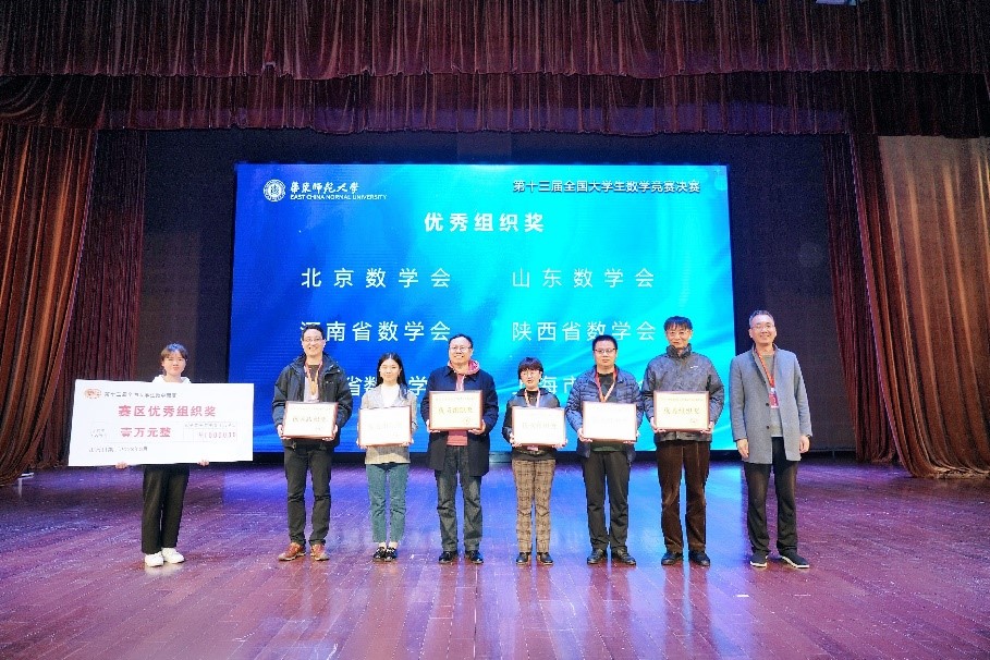 ??中國科學院院士葉向東教授,華東師范大學黨委副書記、教務處處長孟鐘捷教授,中國數學會副理事長兼秘書長鞏馥洲研究員,上海市數學會理事長陳猛教授,全國大學生數學競賽工作組組長佘志坤教授等出席頒獎典禮。出席頒獎典禮的還有中國數學會代表、全國大學生數學競賽委員會和工作組成員代表、32個省級賽區負責人、帶隊教師和參賽學生。