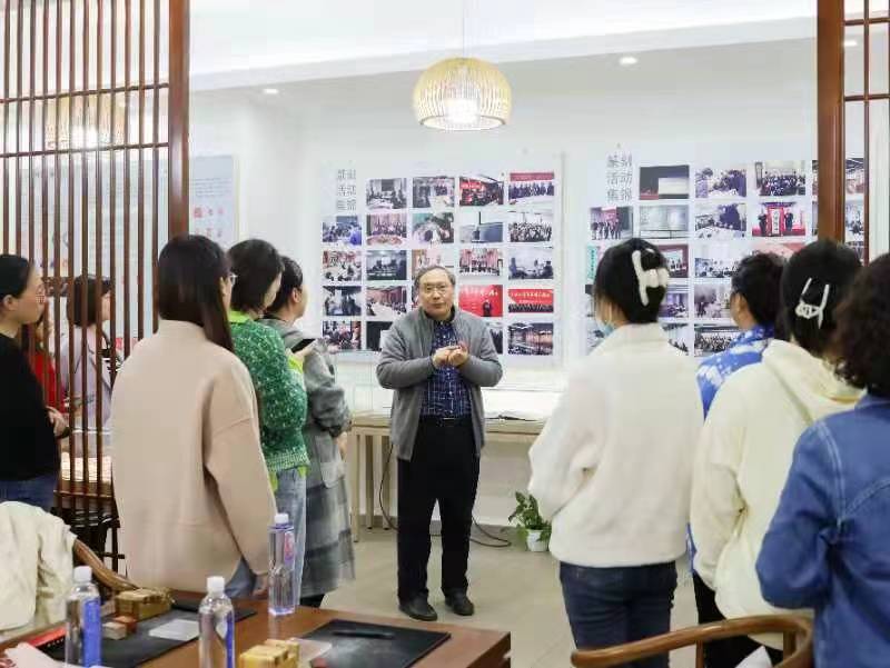 華東師范大學美術學院黨委書記劉麒向到場的女性師生致以節日的問候和美好的祝福,接著向大家介紹了篆刻基地工作坊創建的基本情況。篆刻基地負責人、美術學院書法系主任張索,通過現場講解和視頻演示,向大家普及篆刻的基本技法和相關知識。