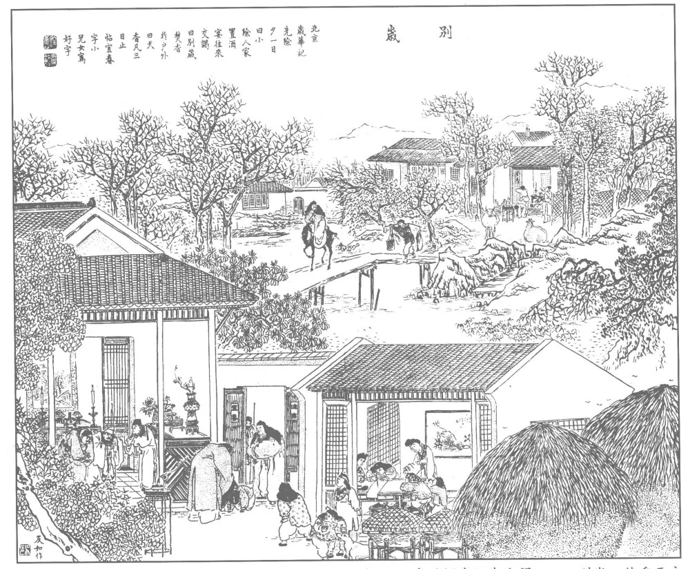 先除夕一日曰小除,人家置酒宴,往來交謁曰別歲。焚香于戶外曰天香。凡三日止,帖宜春字,小兒女寫好字。