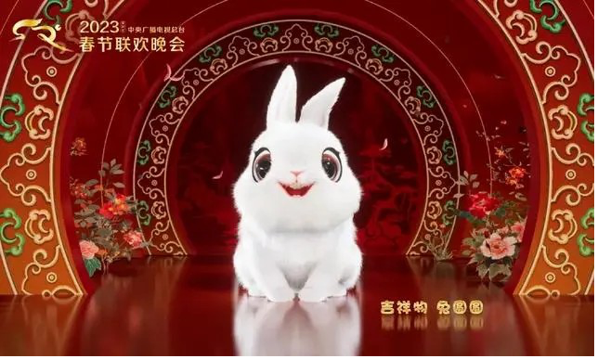 中央電視臺今年的春節晚會所使用的吉祥物“兔圓圓” 。圖片來源:央視截圖
