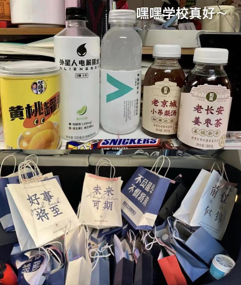 不止黃桃罐頭,電解質(zhì)水、士力架等一件件最I(lǐng)N單品,被裝在“好事將至”“前程似錦”的禮包里悄然來到考生身邊。開考之前,上海應(yīng)用技術(shù)大學(xué)經(jīng)濟(jì)與管理學(xué)院的考研學(xué)子們收到了最溫暖的禮物與祝福,“學(xué)校真好,我們一定全力以赴?!蓖瑯?,裝著考試文具套裝、可樂和橙子的禮包,也被送到上應(yīng)大理學(xué)院考生手中,寓意他們都能“橙”功上岸??忌娂姳硎?,學(xué)校和老師的關(guān)心是最棒“強(qiáng)心劑”。