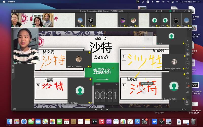就在今年夏天,華東師大克服疫情影響,通過國際中文教師獎學金在線研修項目,招收和培養了蘭舒這樣的來自阿卜杜勒·阿齊茲國王大學等沙特頂尖大學的88名學生。為此,學校精心組織優秀教師和服務團隊,打造了適合沙特學生學習方式的中國漢語水平考試(HSK)標準課程和中國文化課程,通過多元互動的在線活動幫助學生提升漢語能力,開拓文化視野。