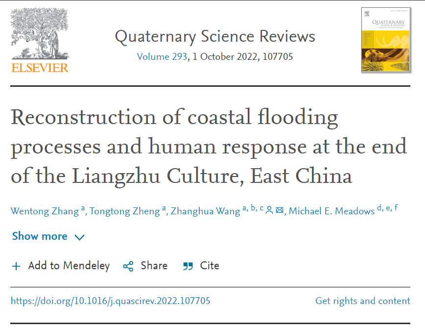 2018年,華東師大河口海岸學國家重點實驗室的王張華教授團隊,通過與寧波市文物考古研究所、上海博物館考古部的合作,對浙江寧波鎮海九龍湖鎮的魚山遺址地層記錄展開研究,發現該遺址記錄了良渚文化晚期的相對海平面上升事件以及強風暴災害,提出海平面快速上升導致長江三角洲及杭州灣濱海平原在良渚文化末期發生大范圍的水澇災害,可能是觸發良渚文化衰變的重要環境因素。