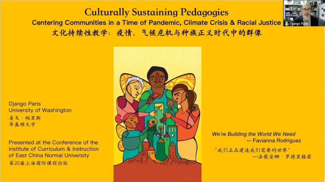 美國華盛頓大學詹姆斯和徹麗·班克斯首任講席教授,班克斯教育公平中心主任Django Paris作了題為“文化持續性教學:疫情、氣候危機與種族正義時代中的群像“的報告。