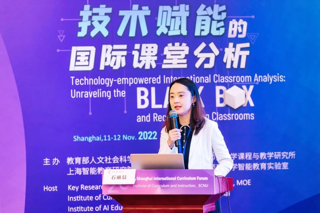 華東師范大學國際課堂分析實驗室副主任石雨晨副教授作了主題為“國際課堂分析的十大前沿問題”的報告。