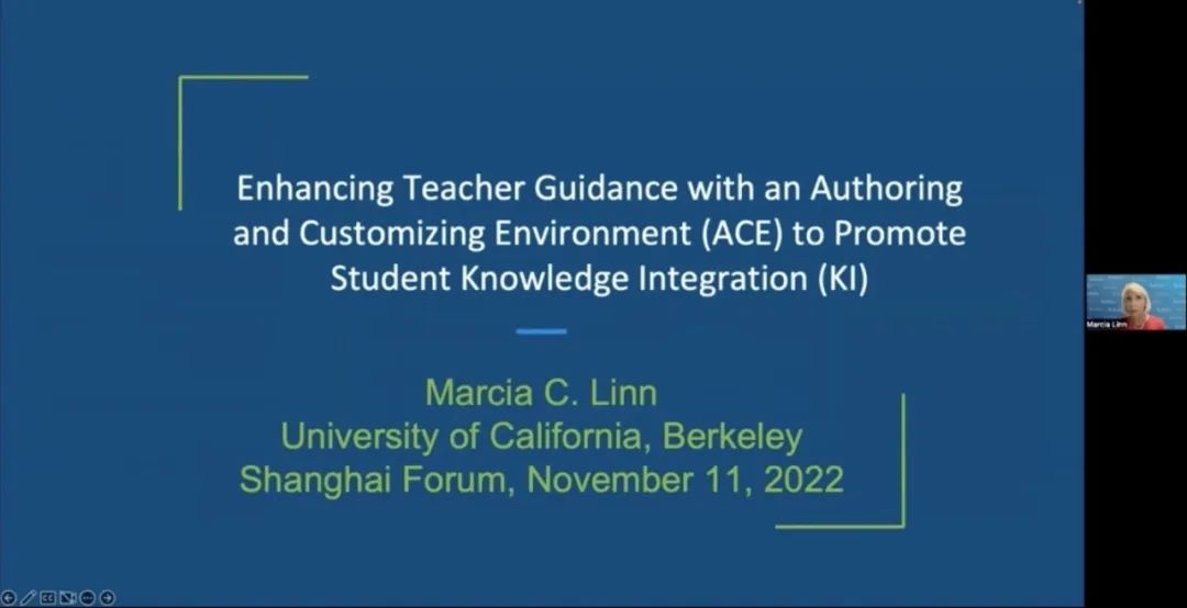 美國加州大學伯克利分校教育學院教學科學Evelyn Lois Corey講席教授Marcia Linn以“促進學生的知識整合:利用定制環境加強教師指導“為題,介紹了能夠定制環境的教學系統如何幫助教師識別最需要幫助的學生,協調學生的學習任務并記錄作業,根據作業記錄定制教學,為學生的復雜科學主題學習提供自動化的指導。