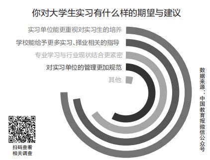 大學生們也期望在實習中得到更多外界的支持。超八成受訪者希望實習單位能更加重視對實習生的培養,學校能給予更多實習、擇業相關的指導。