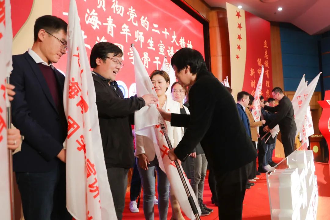 團市委副書記徐豪、華東師范大學黨委副書記楊昌利為宣講聯盟發起單位代表授旗。